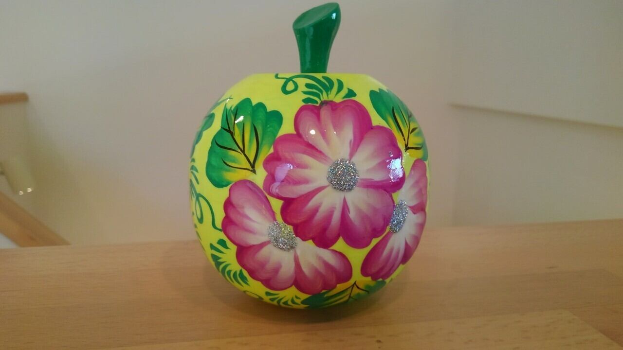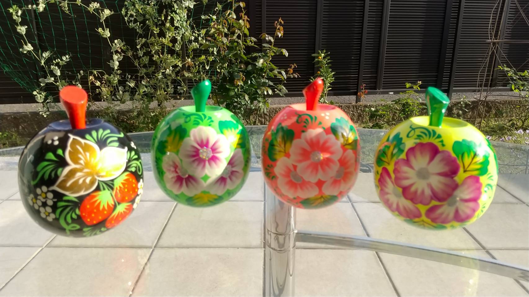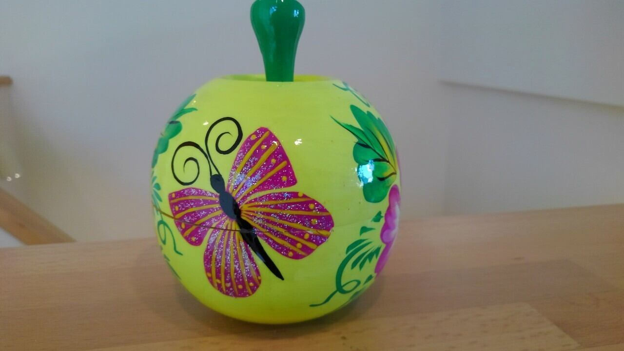 北欧ロシアの木製民芸品・リンゴの入れ物【蝶々】