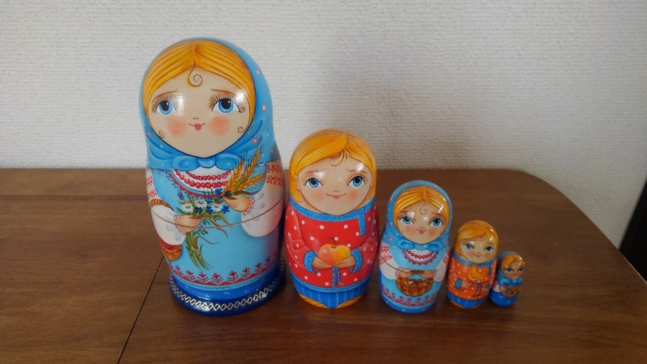 ロシアで有名なオリガ・グーセヴァさんという作家から直接譲り受けたマトリョーシカです。