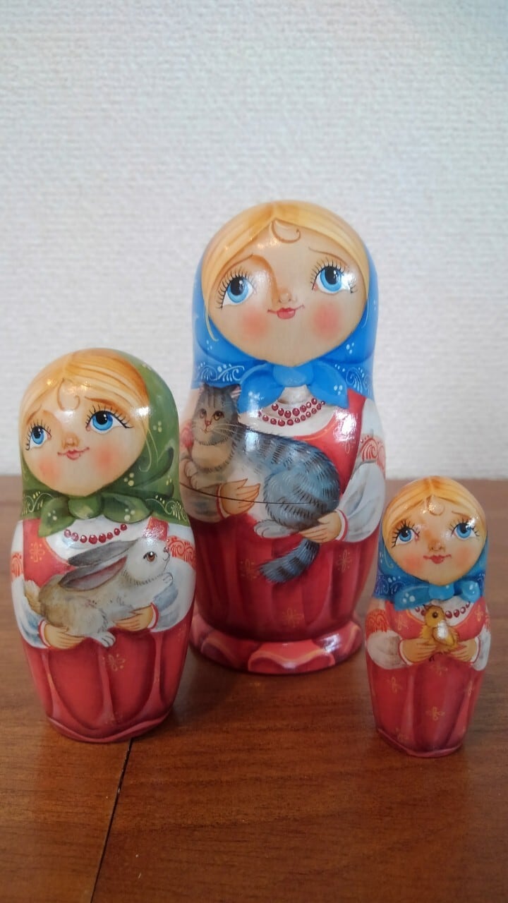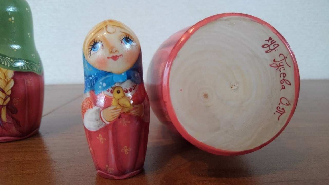 ロシアで有名なオリガ・グーセヴァさんという作家から直接譲り受けたマトリョーシカです。