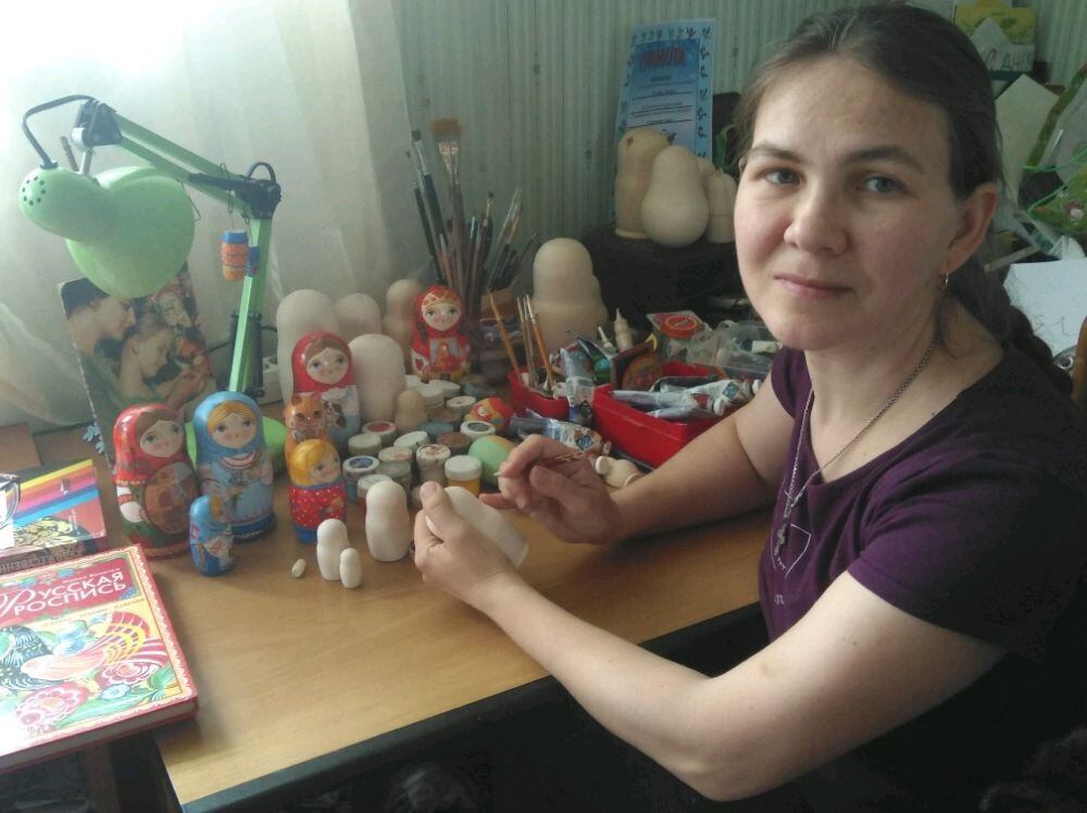 グセヴァさんはロシア国内の教育大学芸術学部を卒業。私立学校にて美術の教鞭を執った後、プロのマトリョーシカ作家として15年間マトリョーシカを描き続けています。