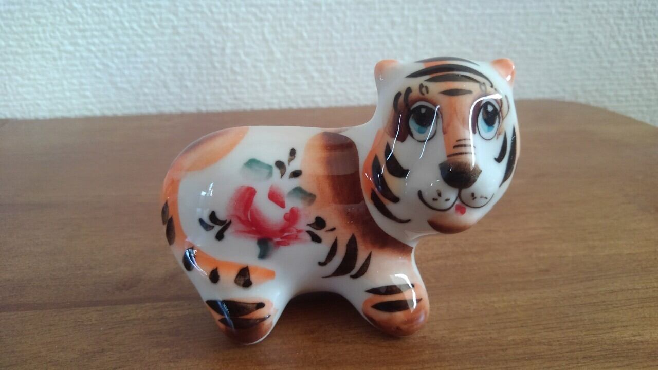 ◆商品説明:ロシアの伝統陶器、グジェリ焼きです。寅がモチーフになっています。動物陶器や北欧雑貨、東欧雑貨が好きな方への贈り物にいかがでしょうか?