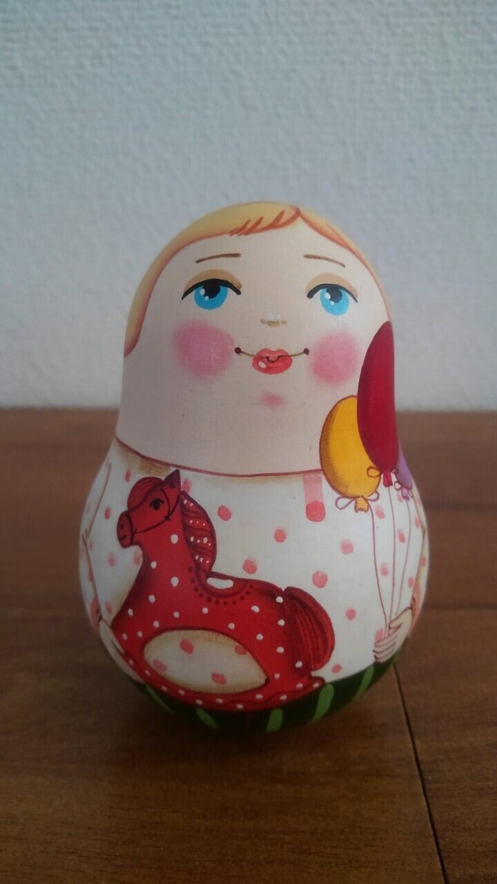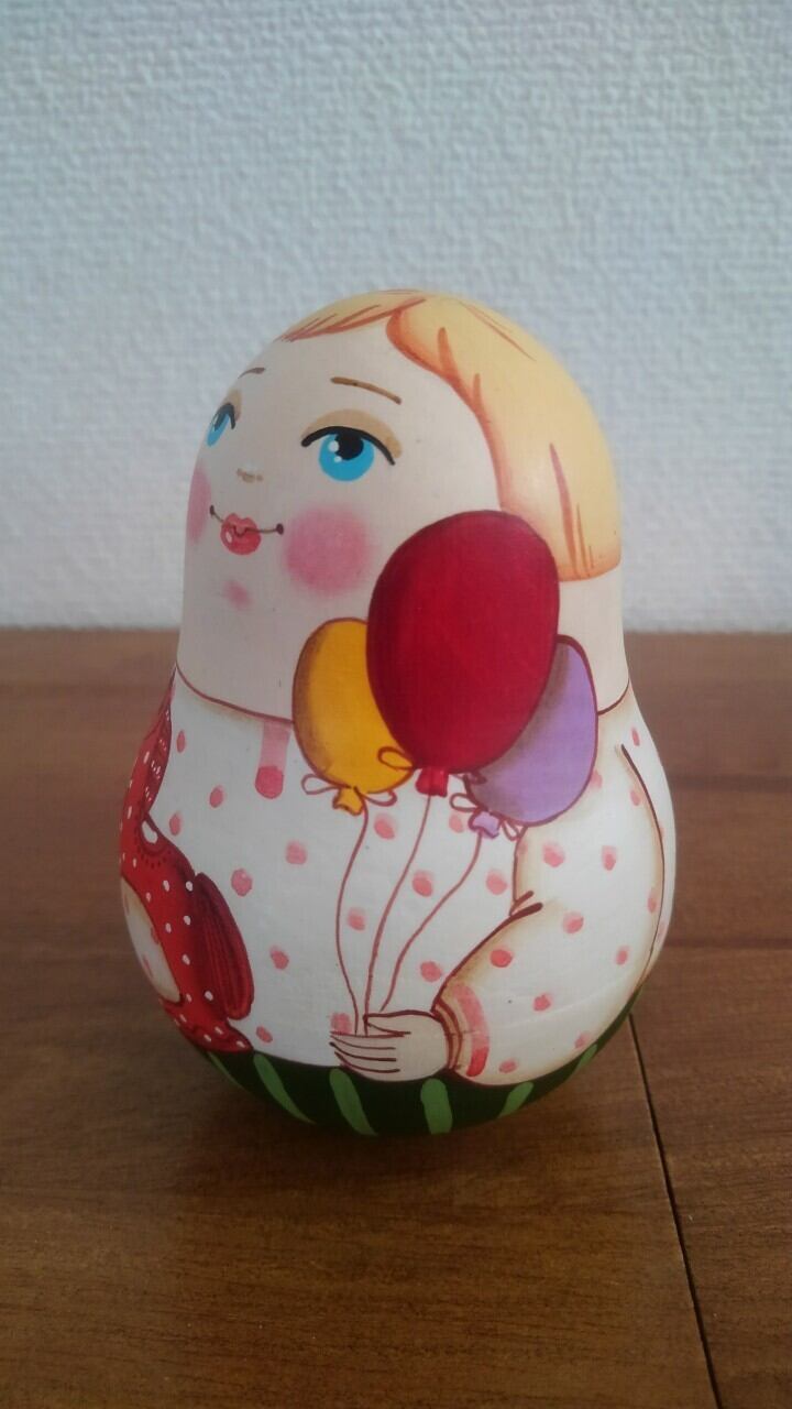 ロシアで有名なエレーナ・イワンツォワさんという作家から直接譲り受けた起き上がりこぼしです。前後左右に振ると「カランコロン」という涼しげな鈴の音が鳴ります。