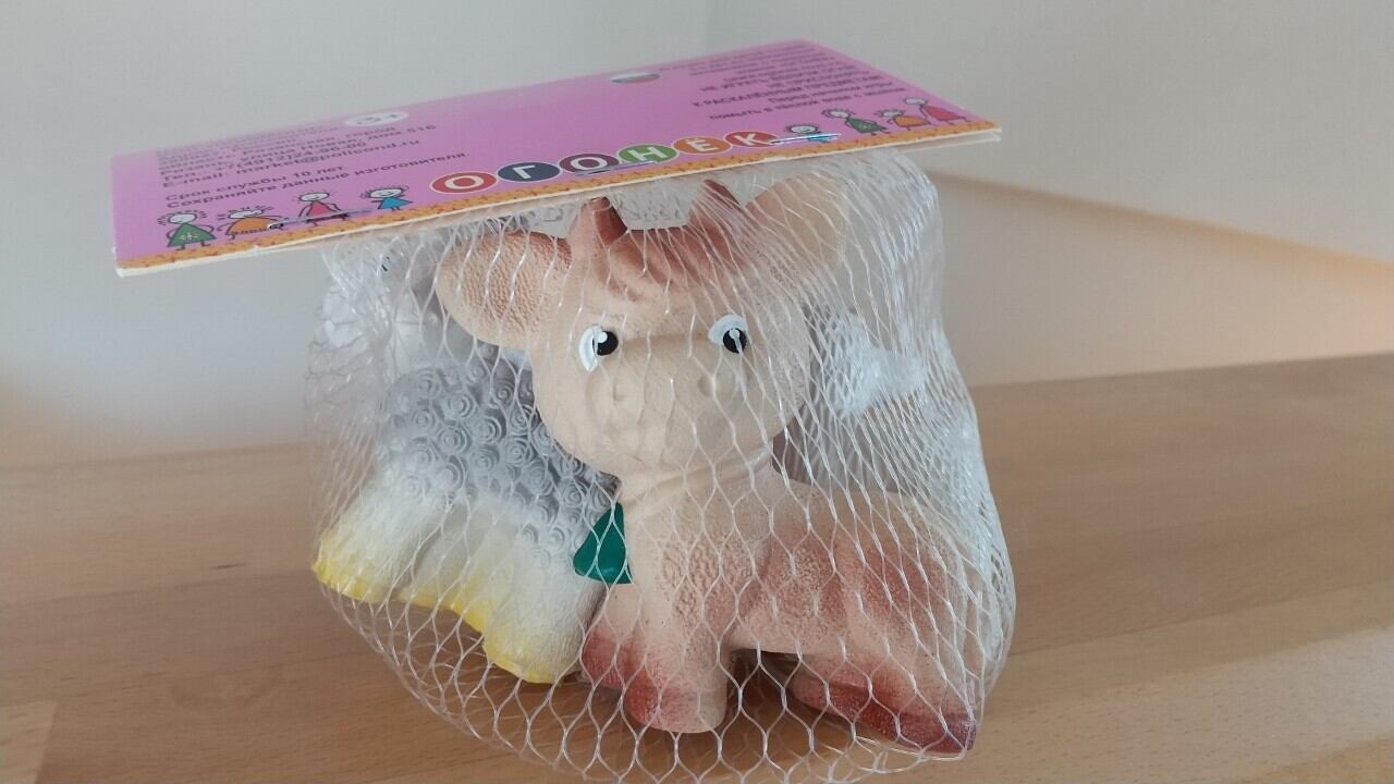 牧場の動物たちのソフビ人形です。ソビエト(ソ連)の懐かしいノスタルジックなソフトビニール人形です。ロシアではソ連時代から続くアガニョークと呼ばれる老舗の玩具会社の商品で、ソビエト時代のソフビ人形の復刻版です。
