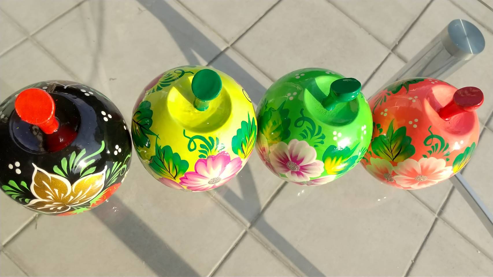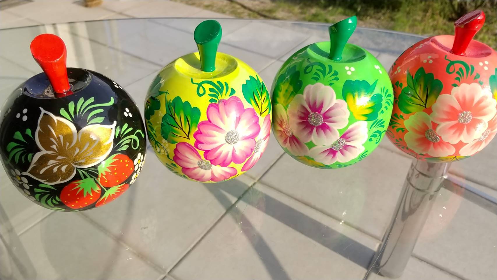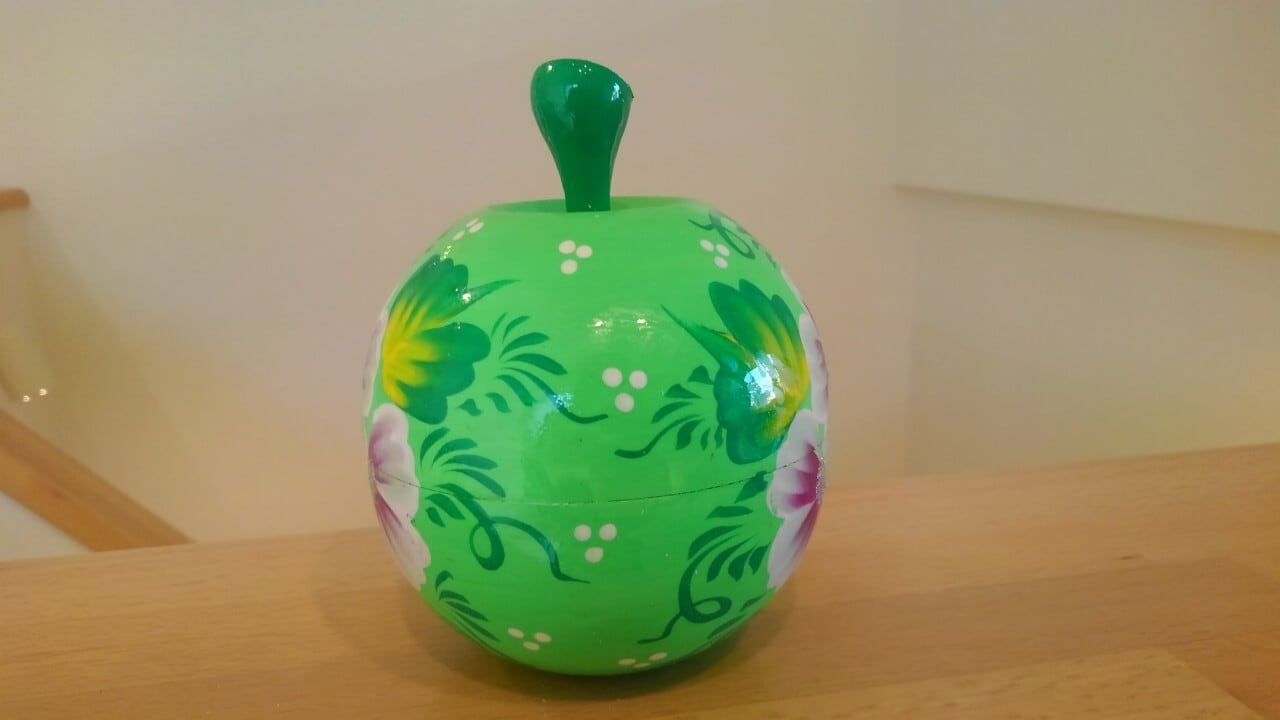 北欧ロシアの木製民芸品・リンゴの入れ物【緑】