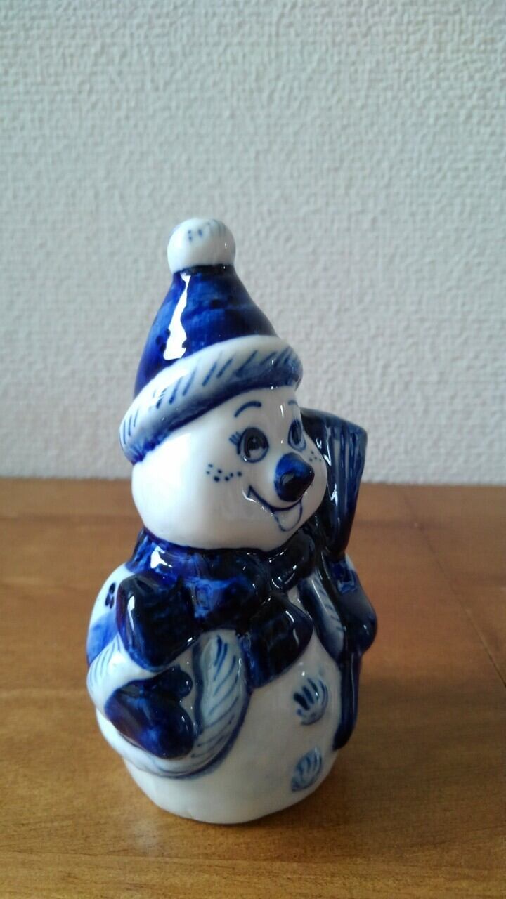 北欧ロシア、グジェリ焼 雪だるま【品番 GZ010】