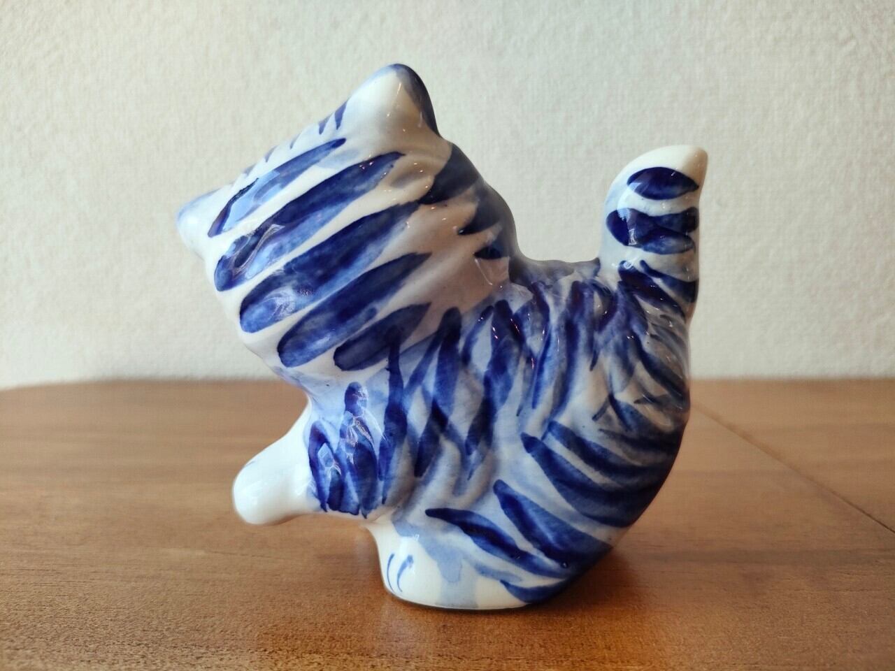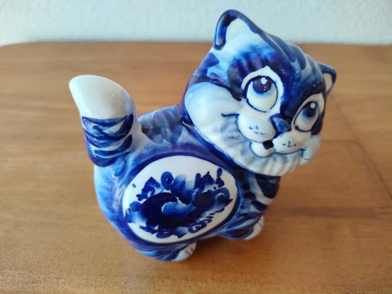 【GZ025】北欧ロシア、動物陶器 グジェリ焼 人懐っこい猫