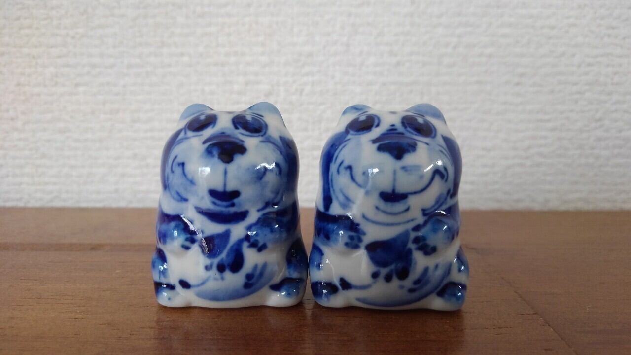 【GZ028】北欧ロシア、動物陶器 グジェリ焼 子ねこ2体