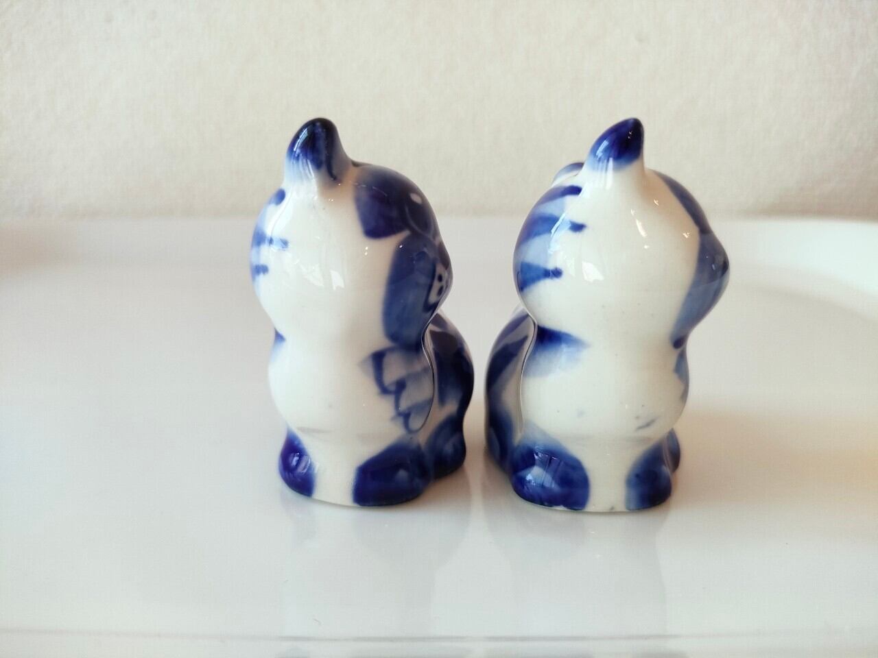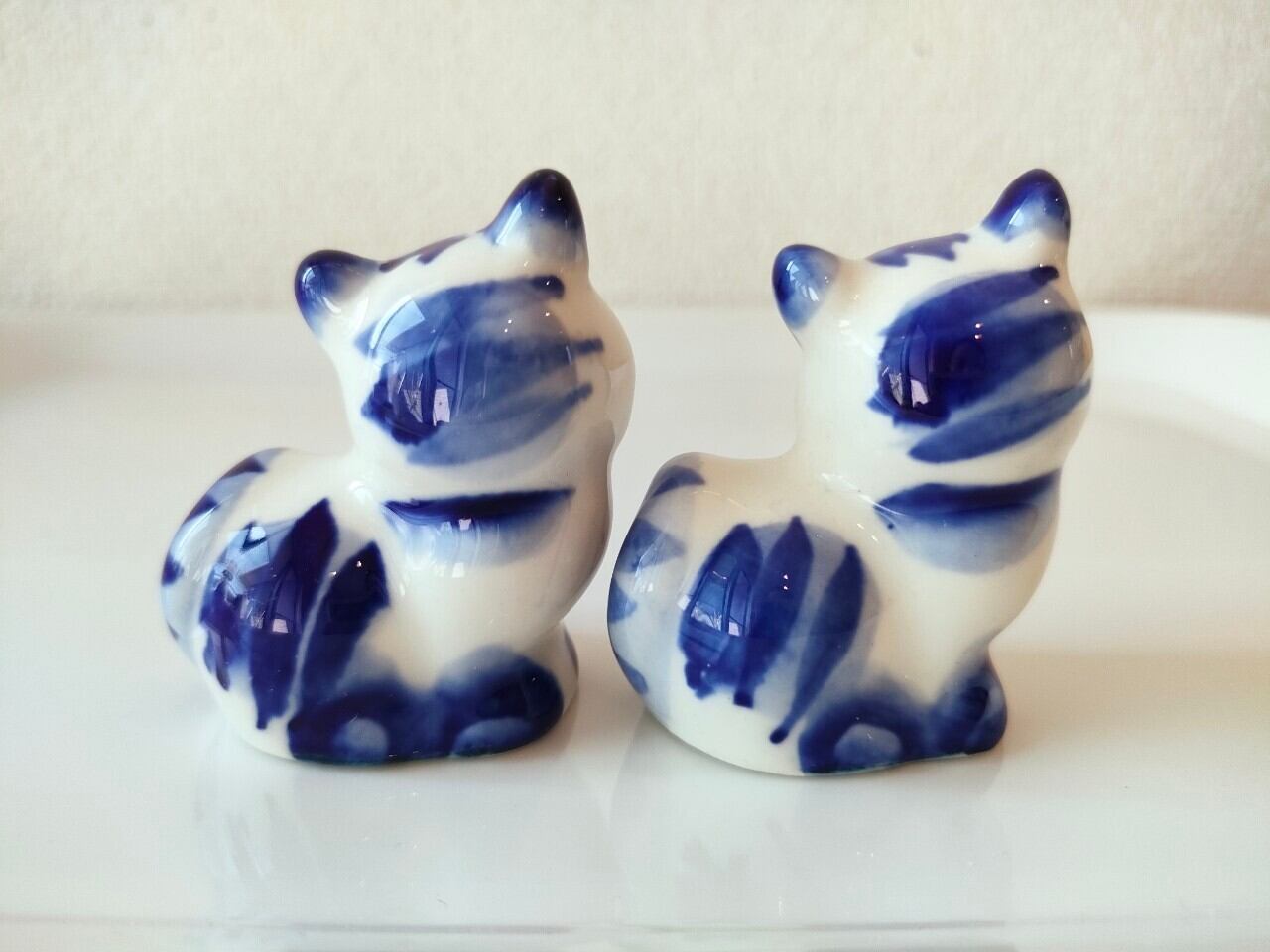 【GZ038】北欧ロシア雑貨、動物陶器 グジェリ焼 猫2体セット
