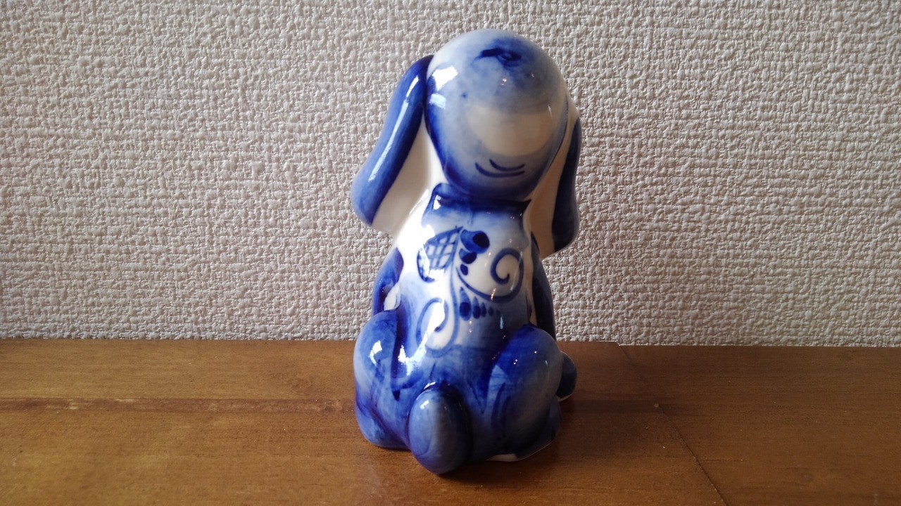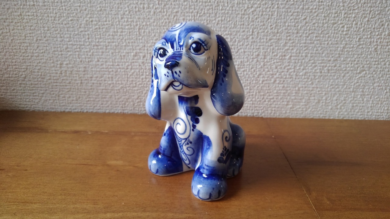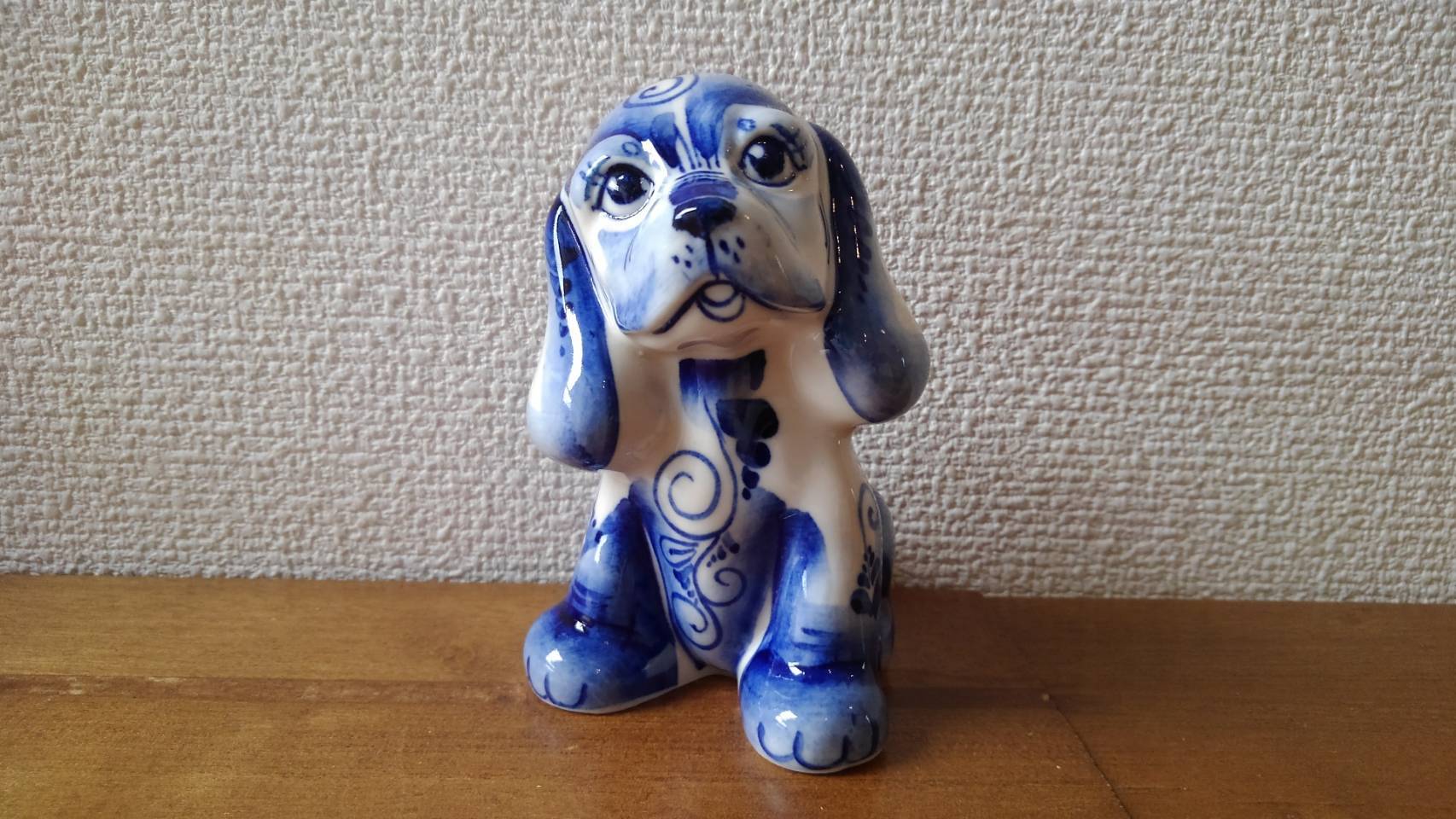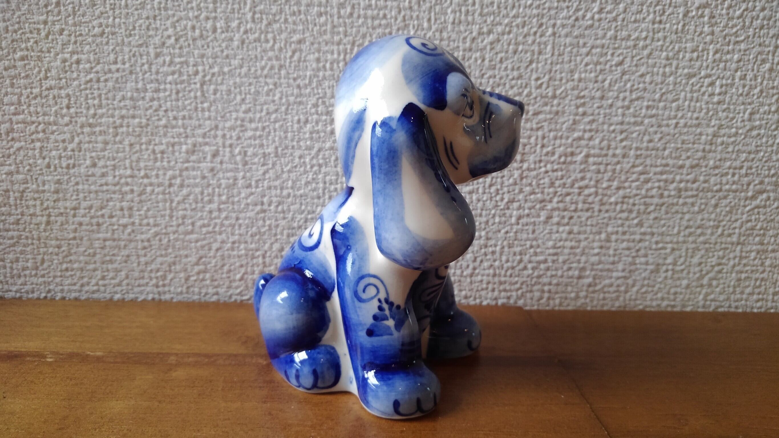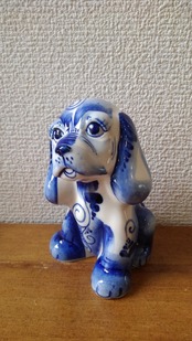 ◆商品説明:ロシアの伝統陶器、グジェリ焼きです。犬をモチーフにしています。