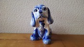 【GZ052】北欧ロシア雑貨、動物陶器 グジェリ焼 バセットハウンド 犬