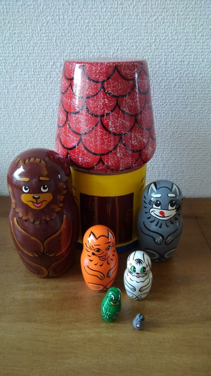 ロシア民話「小さなお家」(テレモク)をモチーフにしたロシアの職人さんによるハンドメイドの作品です。ロシア伝統の原色系べた塗りのカラフルな木製工芸品で、マトリョーシカ風です。ほのかな木の香りがします。