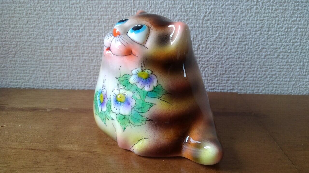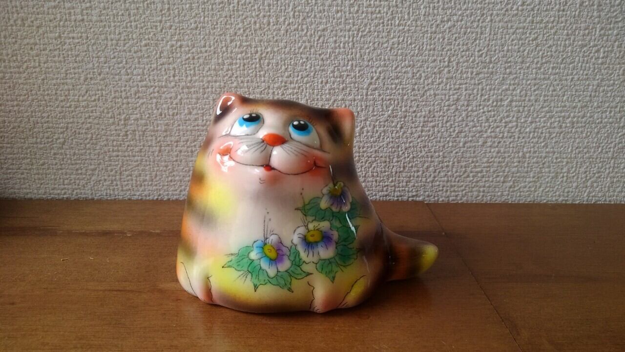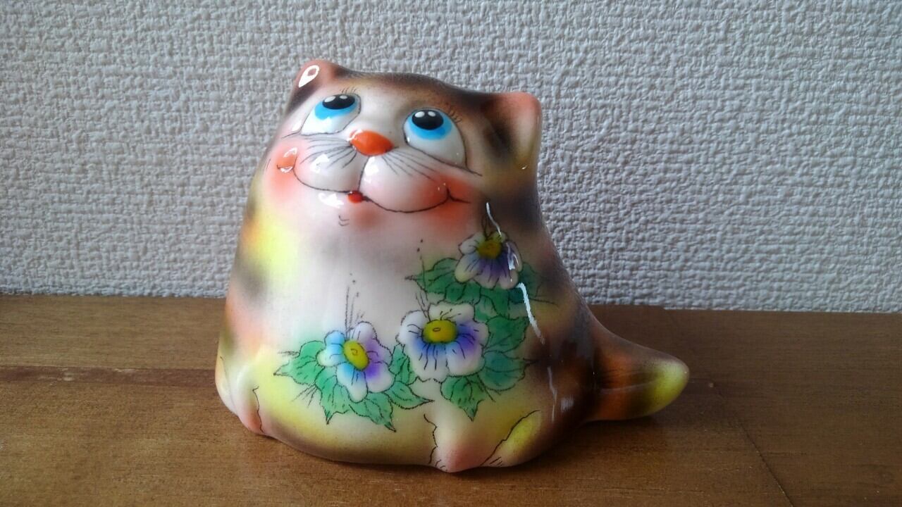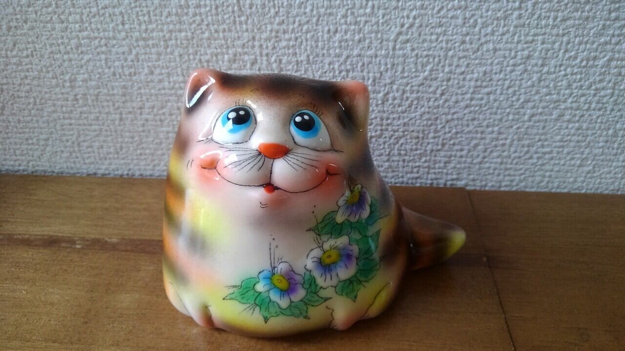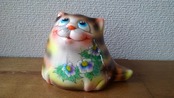 ロシアの伝統陶器、グジェリ焼きです。くいしん坊なネコをモチーフにしています。