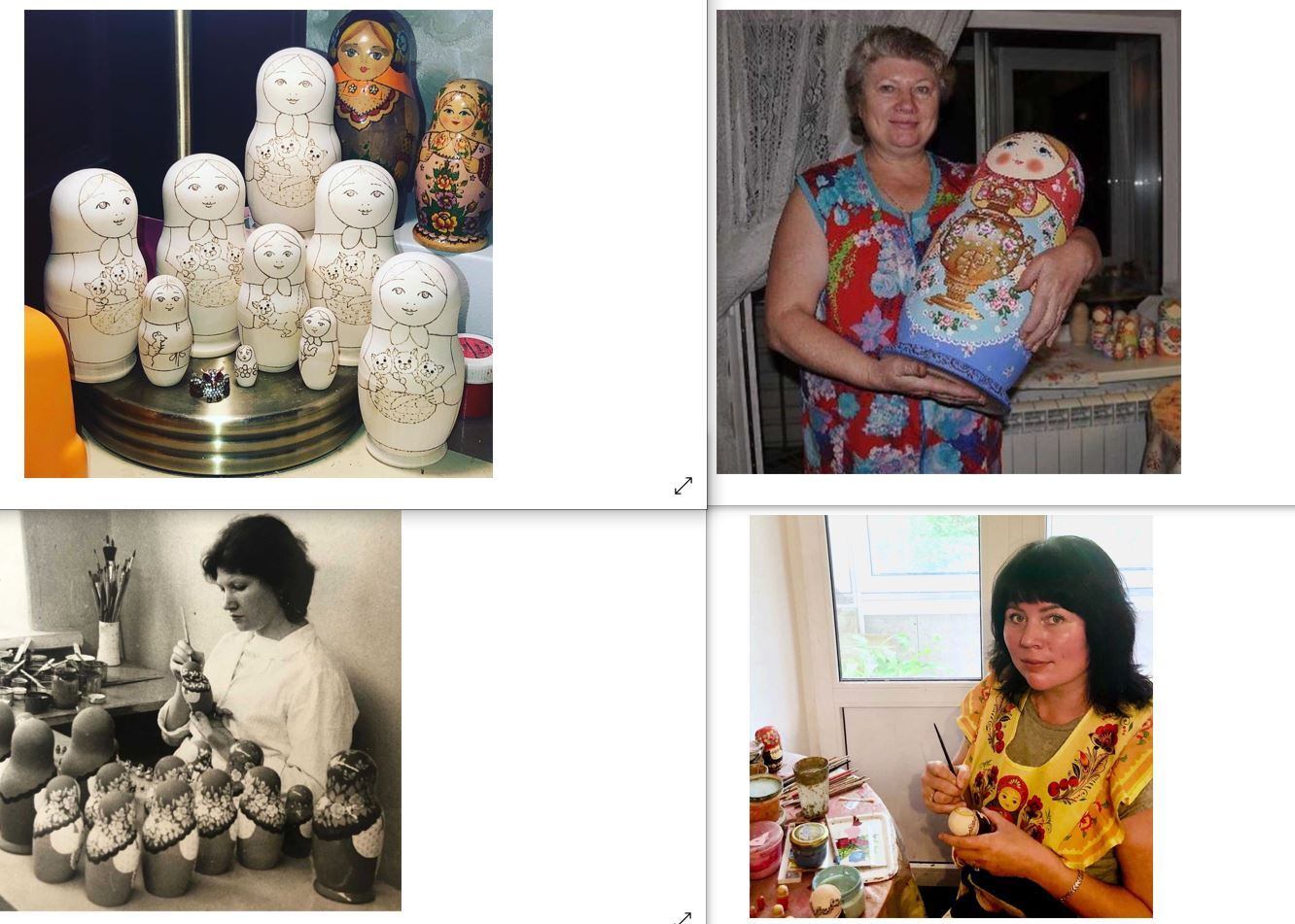 母親のナジェージダ・イワンツォワさんは人生のすべてをマトリョーシカに捧げている大作家さんです。マトリョーシカの描画技術の伝道のため19歳で南米に渡り、その後は世界中の美術館やコレクション博物館などで彼女の作品は展示され始め、認知されました。ロシア・マトリョーシカ誕生の初期の頃の伝統的なデザインを守るスタイルで、この才能と技術は娘のリュボーフィ・ブズィキナさんに継承され、世界中で人気を博しています。贋作も多く、注意が呼びかけられています。