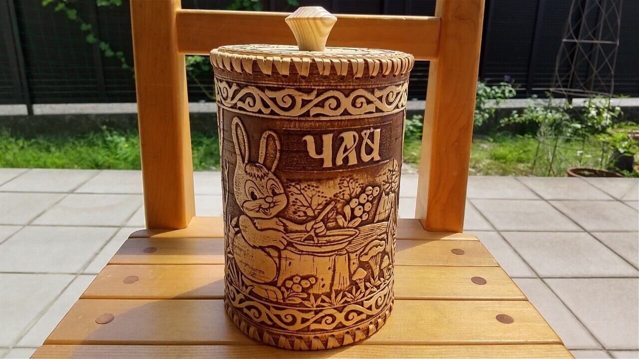 白樺は強い抗菌作用があるとされ、今でもロシアの農村に行くと、パンやキノコ、香辛料、塩砂糖などを入れる置物として活用されています。白樺のほのかな香りがします。