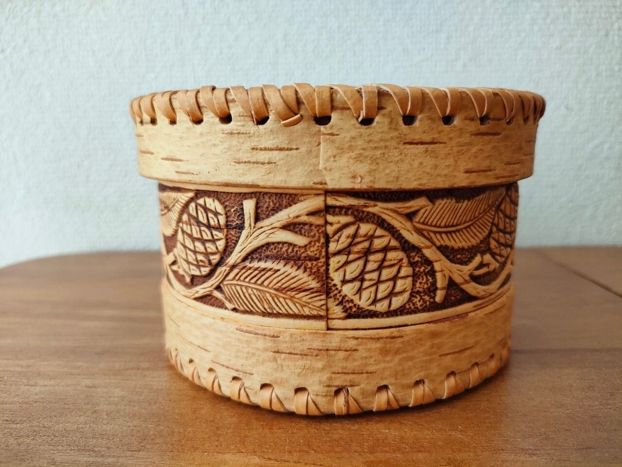 ロシア・北欧の小物入れ、ベレスタです。白樺の真皮で作られている白樺細工です。