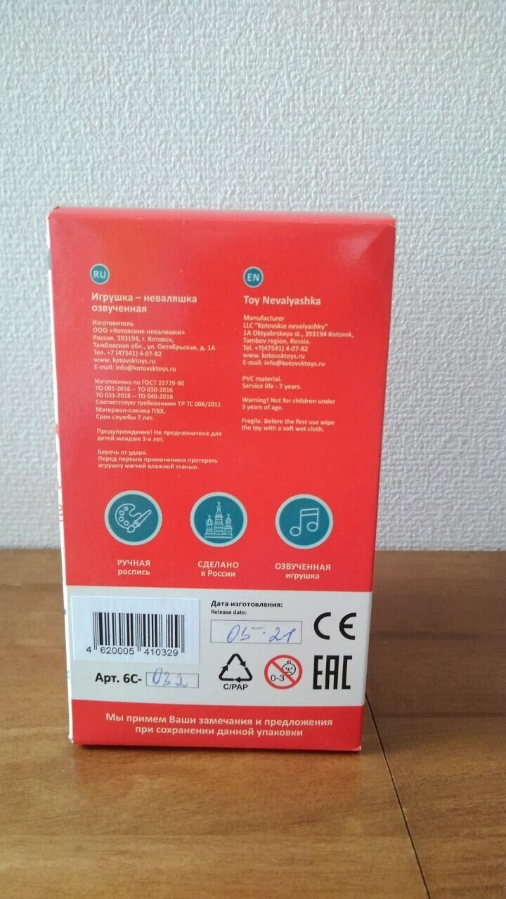 起き上がり小法師のレトロバージョン(復刻版)です。倒すと縦横左右に揺れ続けます。カランコロンと涼しげな鈴の音色がします。GOST基準というロシア国内の厳しい基準を通過した製造玩具です。