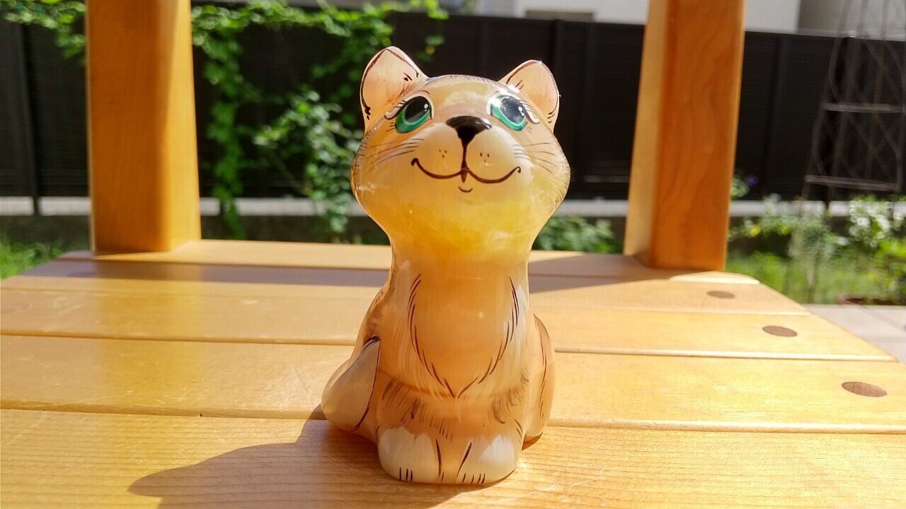 【CEL004】北欧ロシア雑貨の天然石(セレナイト)【ネコ】