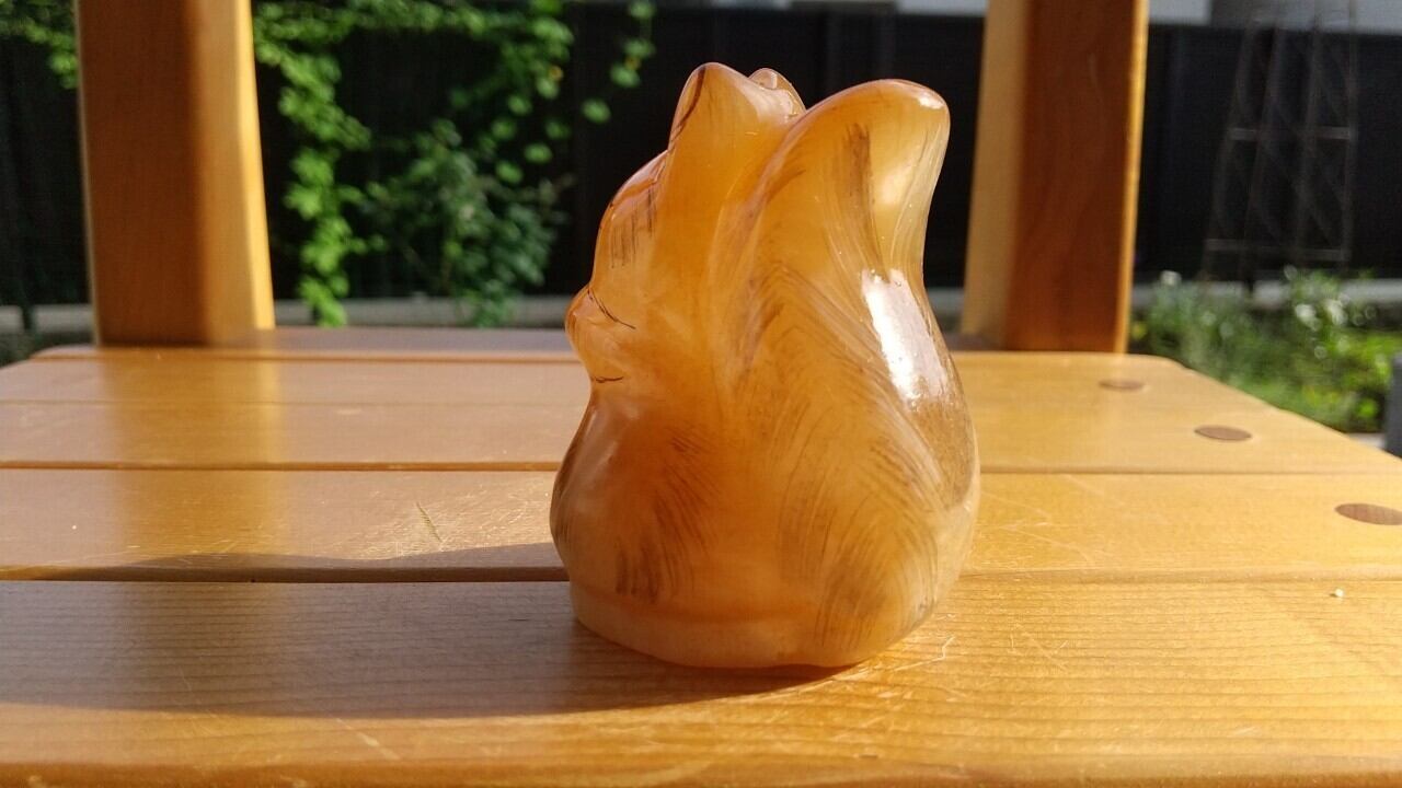 リスをモチーフにした天然石(セレナイト)の置物です。ずっしりとした重厚感のある重石です。
