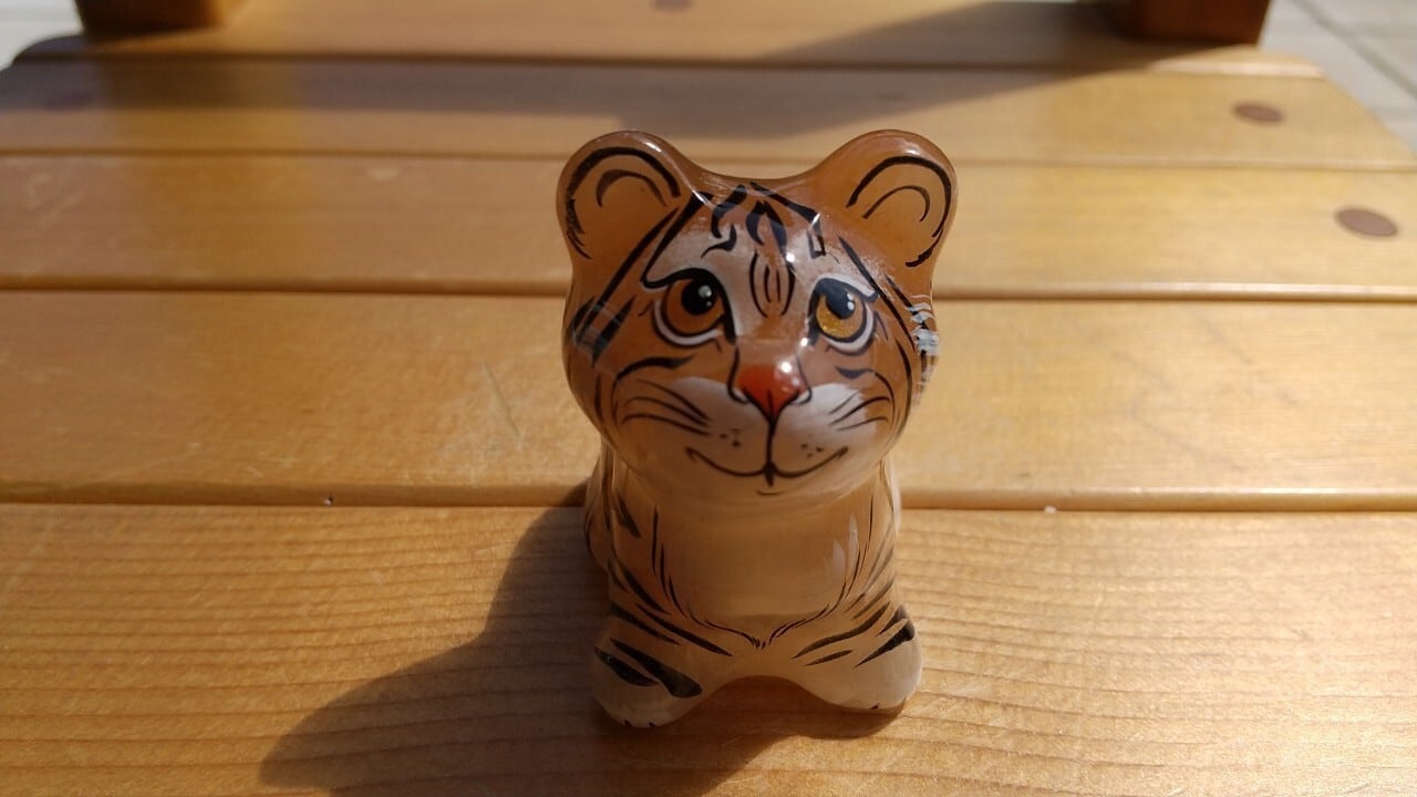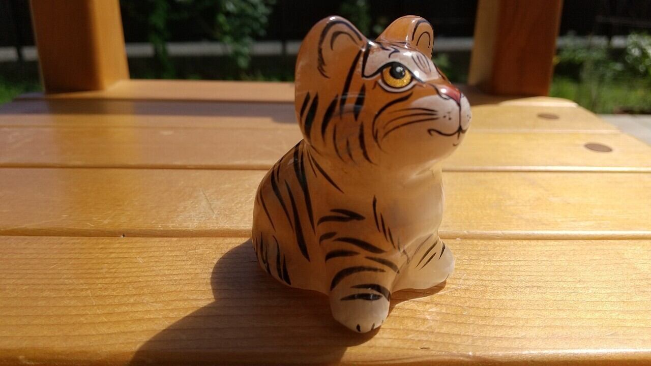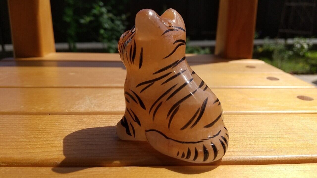 とらをモチーフにした天然石(セレナイト)の置物です。ずっしりとした重厚感のある重石です。