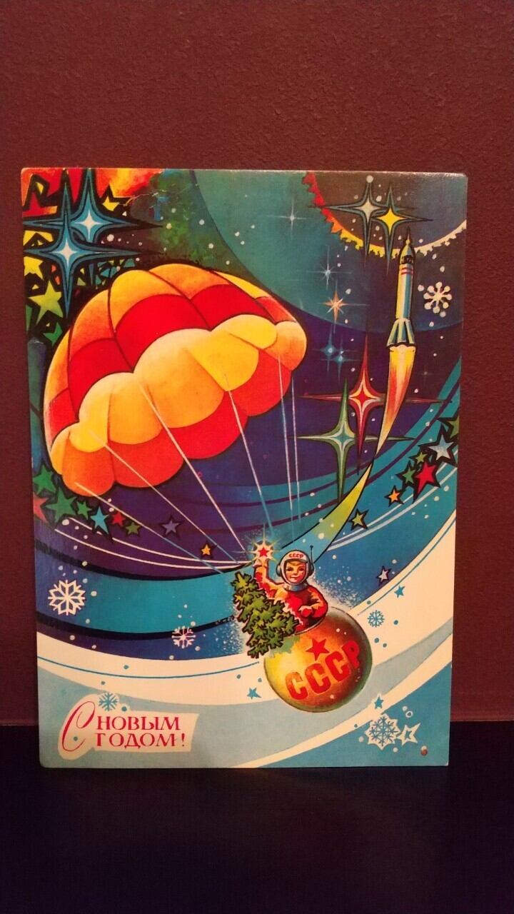 ソ連のヴィンテージ絵葉書です。ソ連の宇宙開発がモチーフのレトロなポストカードです。2枚セット、バラ売り不可です。
