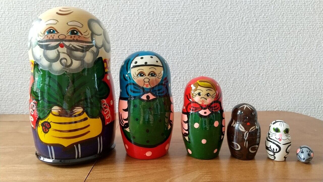 日本でも「おおきなかぶ」の絵本でおなじみの童話をモチーフにしたロシアの職人さんによるハンドメイドのマトリョーシカです。