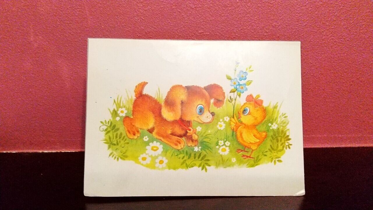 ソ連のヴィンテージ絵葉書です。動物たちがモチーフのレトロなポストカードです。4枚セットばら売り不可です。ミニチュアサイズです。