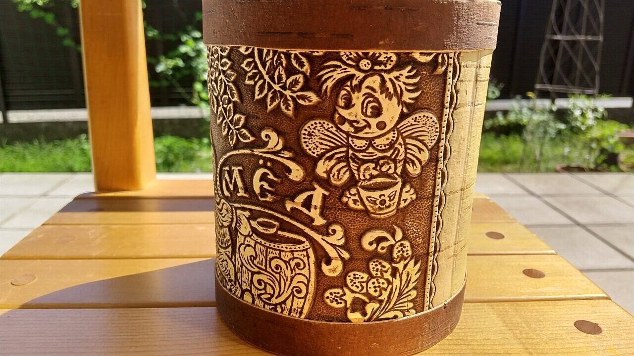 白樺は強い抗菌作用があるとされ、今でもロシアの農村に行くと、パンやキノコ、香辛料、塩砂糖などを入れる置物として活用されています。白樺のほのかな香りがします。