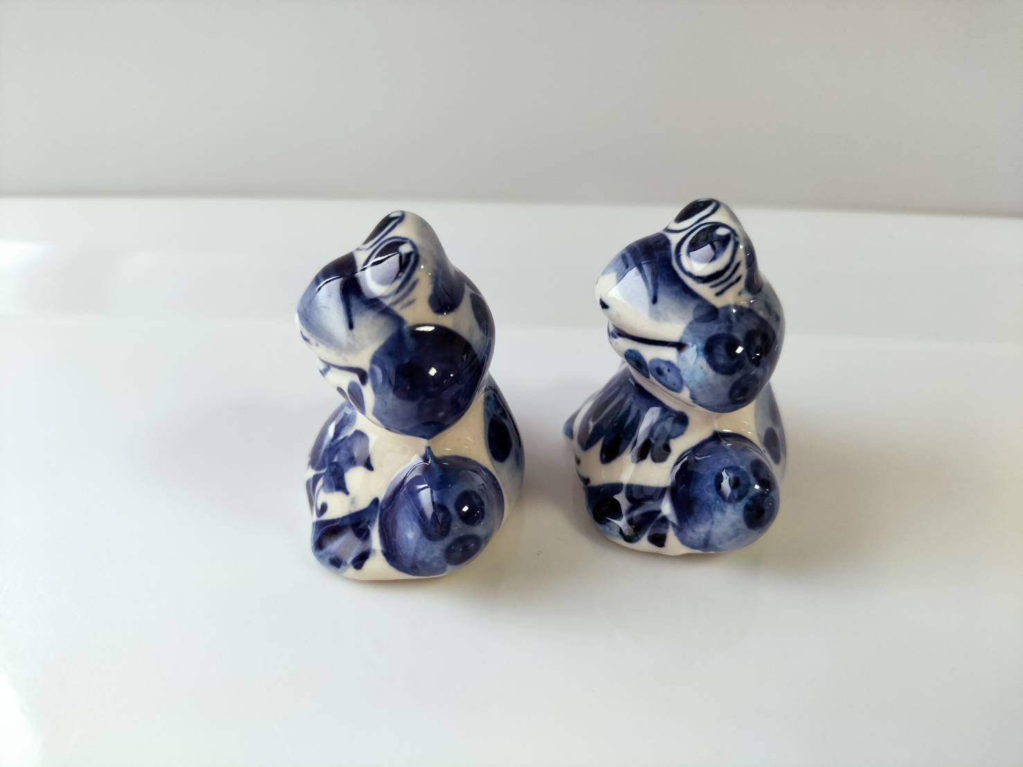 【GZ098】北欧ロシア雑貨、動物陶器 グジェリ焼2個セット かえる兄弟
