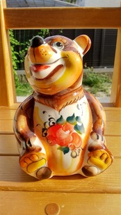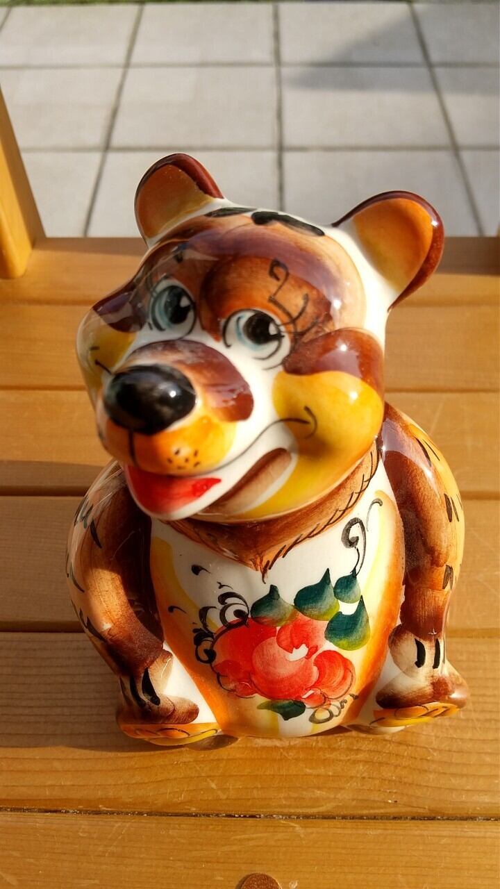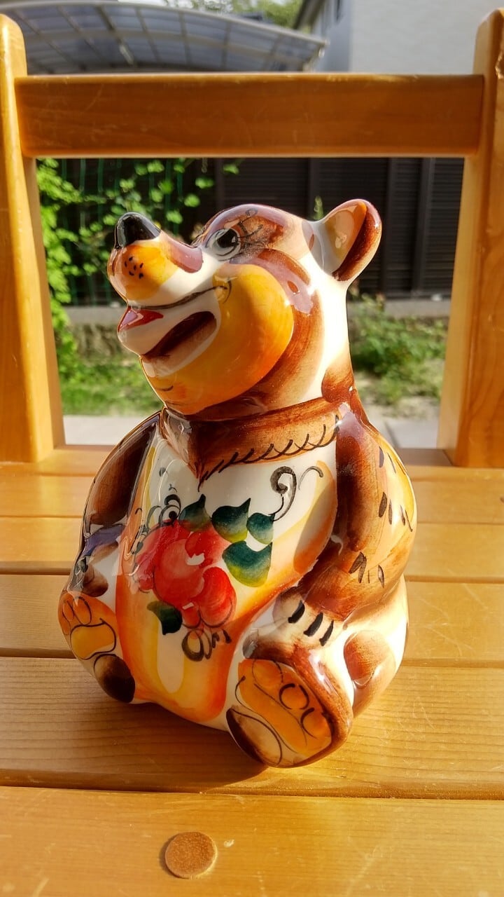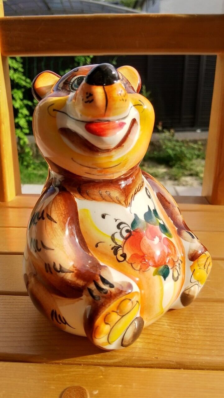 ロシアの伝統陶器、グジェリ焼きです。ぽっちゃりとしたくまをモチーフにしています。大サイズのカラーグジェリです。