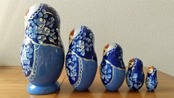 ロシアで有名な陶器【グジェリ】をモチーフにしたロシアの職人さんによるハンドメイドの作品です。ロシア伝統の原色系べた塗りのカラフルな木製工芸品・マトリョーシカです。自然木の香りがします。