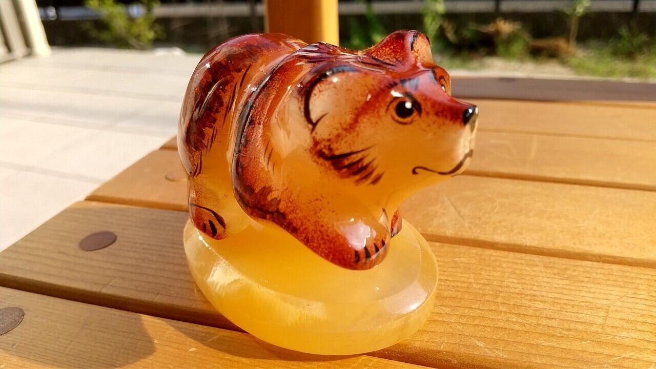 熊をモチーフにした天然石(セレナイト)の置物です。