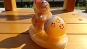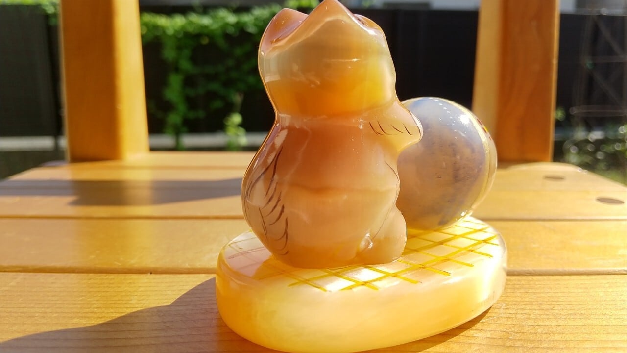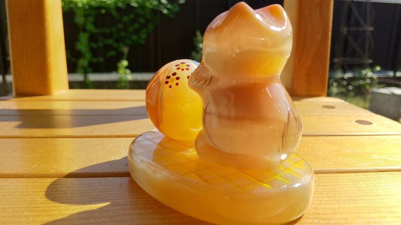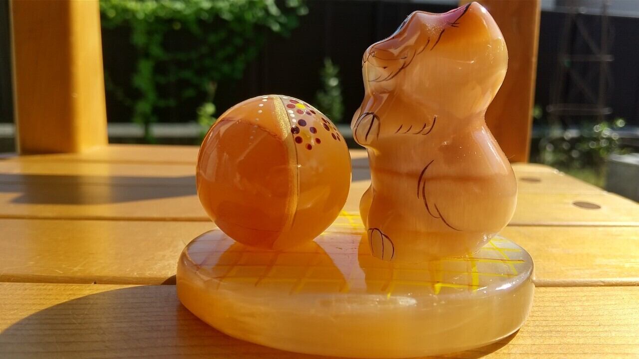 毬で遊ぶ子猫をモチーフにした天然石(セレナイト)の置物です。