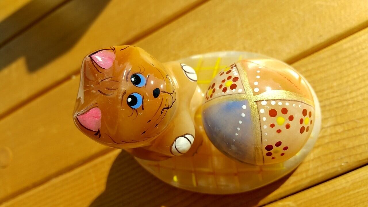 【CEL014】北欧ロシア雑貨の天然石(セレナイト)【毬で遊ぶ子猫】