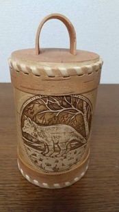 ロシア・北欧の小物入れ、ベレスタです。白樺の真皮で作られている白樺細工です。キツネをモチーフにしています。ベレスタ職人のハンドメイド作品です。