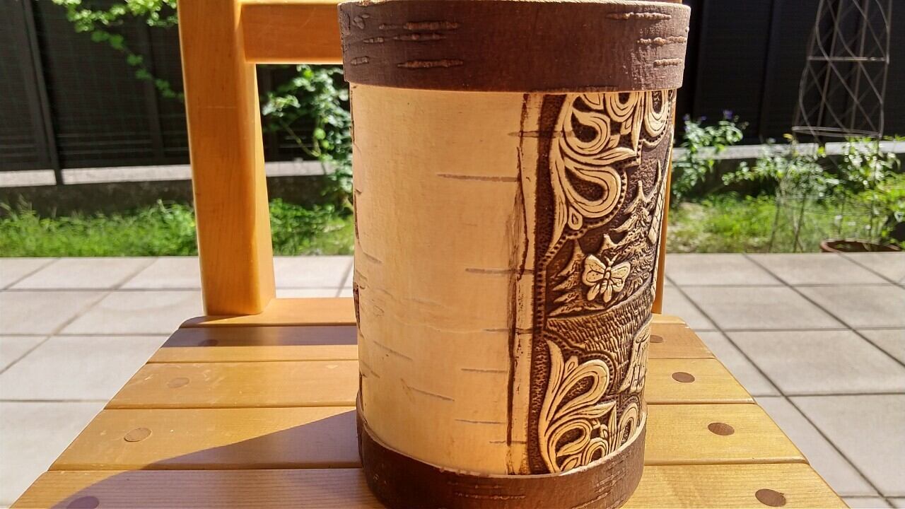 白樺は強い抗菌作用があるとされ、今でもロシアの農村に行くと、パンやキノコ、香辛料、塩砂糖などを入れる置物として活用されています。白樺のほのかな香りがします。