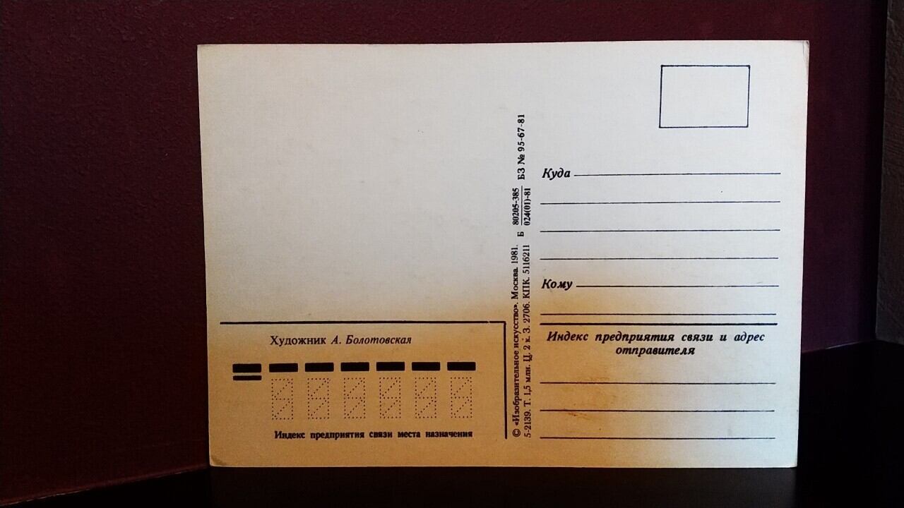 ソ連のヴィンテージ絵葉書です。童話『小さな家』の冬がモチーフのレトロなポストカードです。