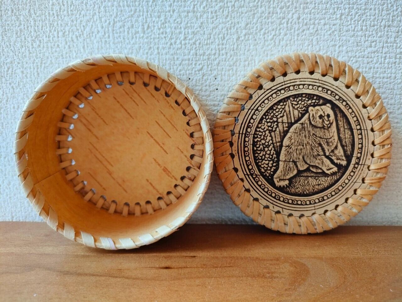 【BE041】北欧ロシア雑貨、ベレスタ・白樺の小物入れ 熊