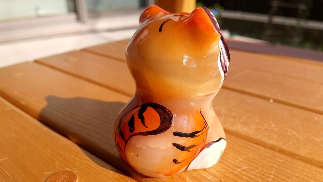 トラをモチーフにした天然石(セレナイト)の置物です。
