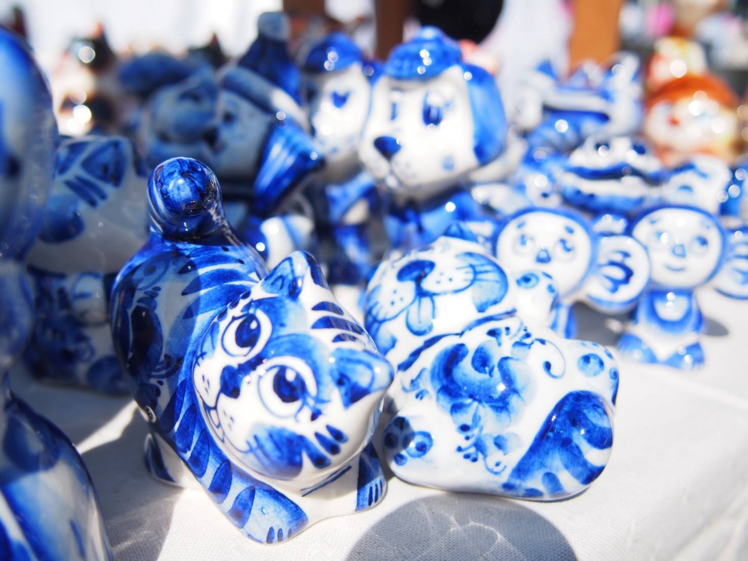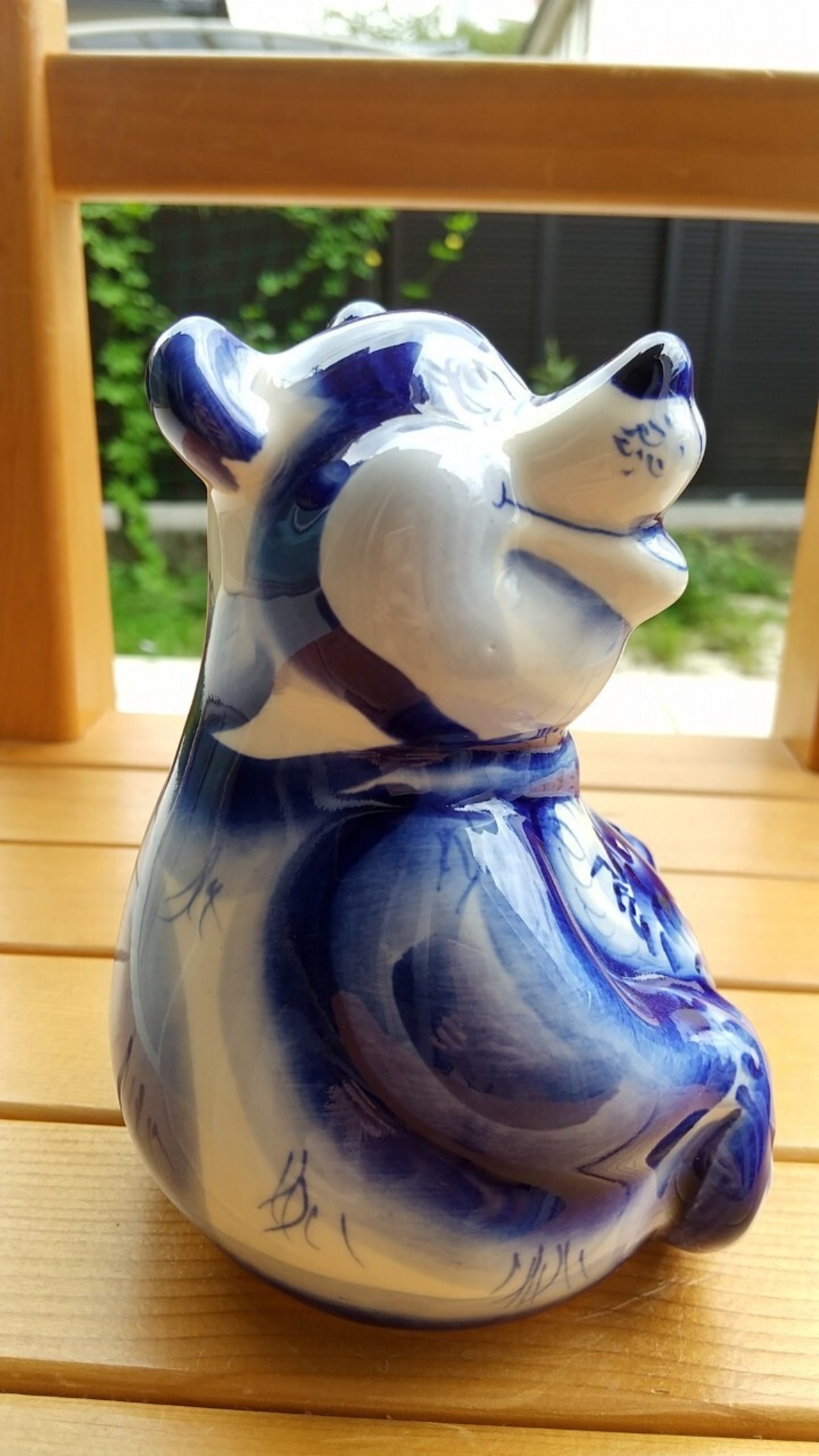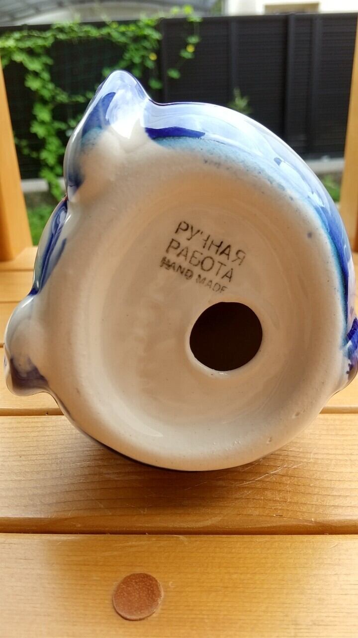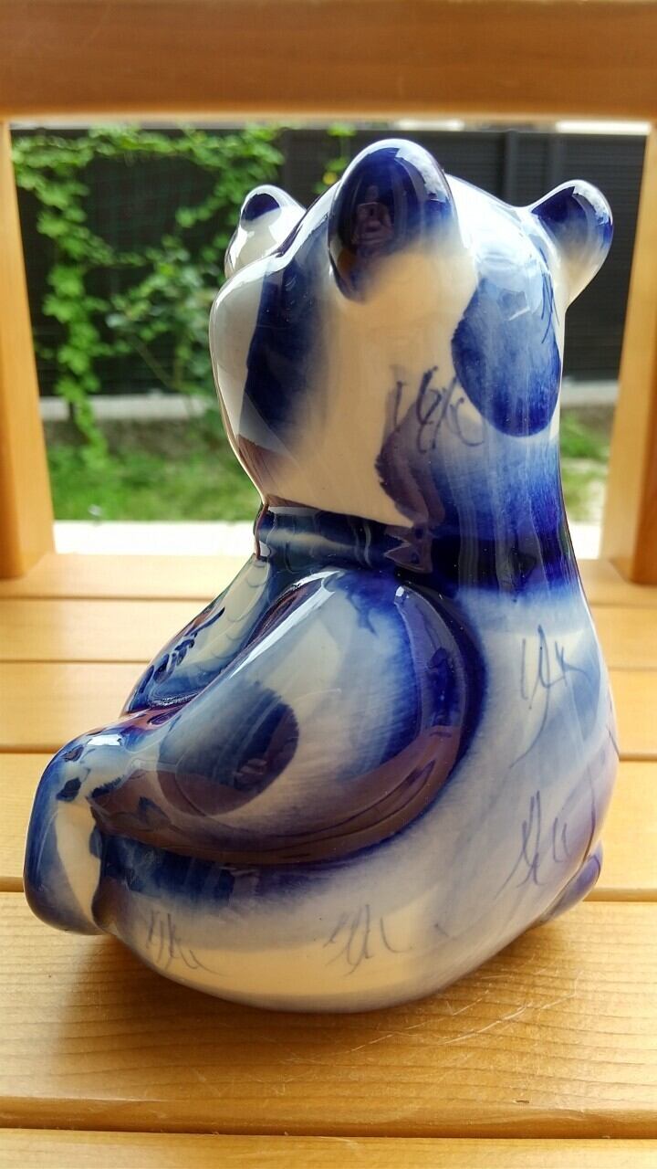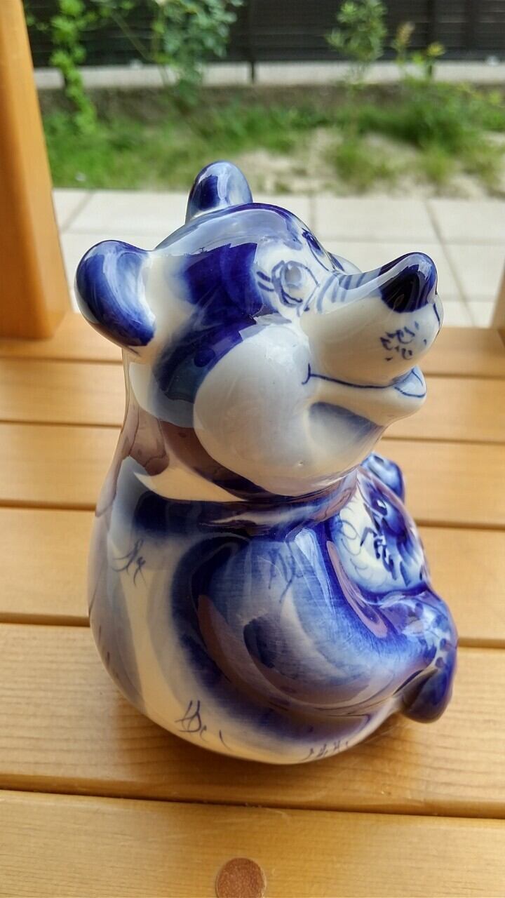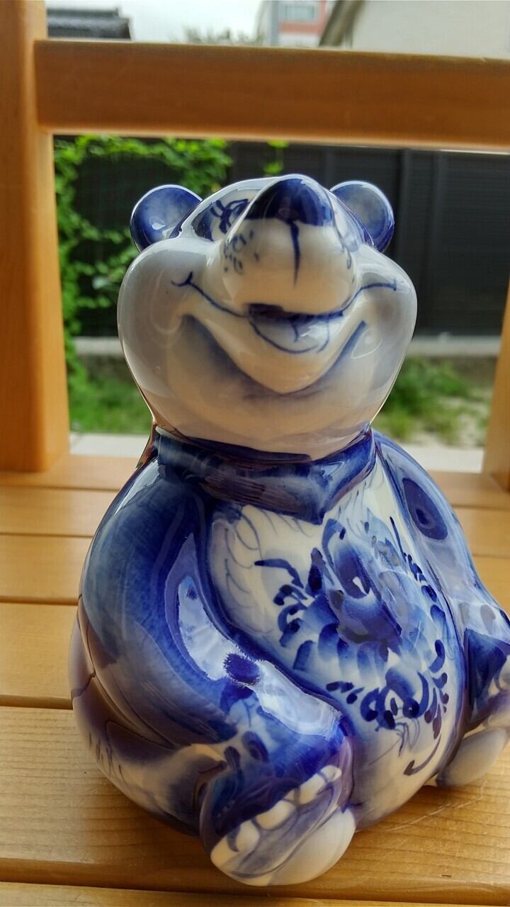 ロシアの伝統陶器、グジェリ焼きです。ぽっちゃりしたくまをモチーフにしています。大サイズのグジェリ焼きです。