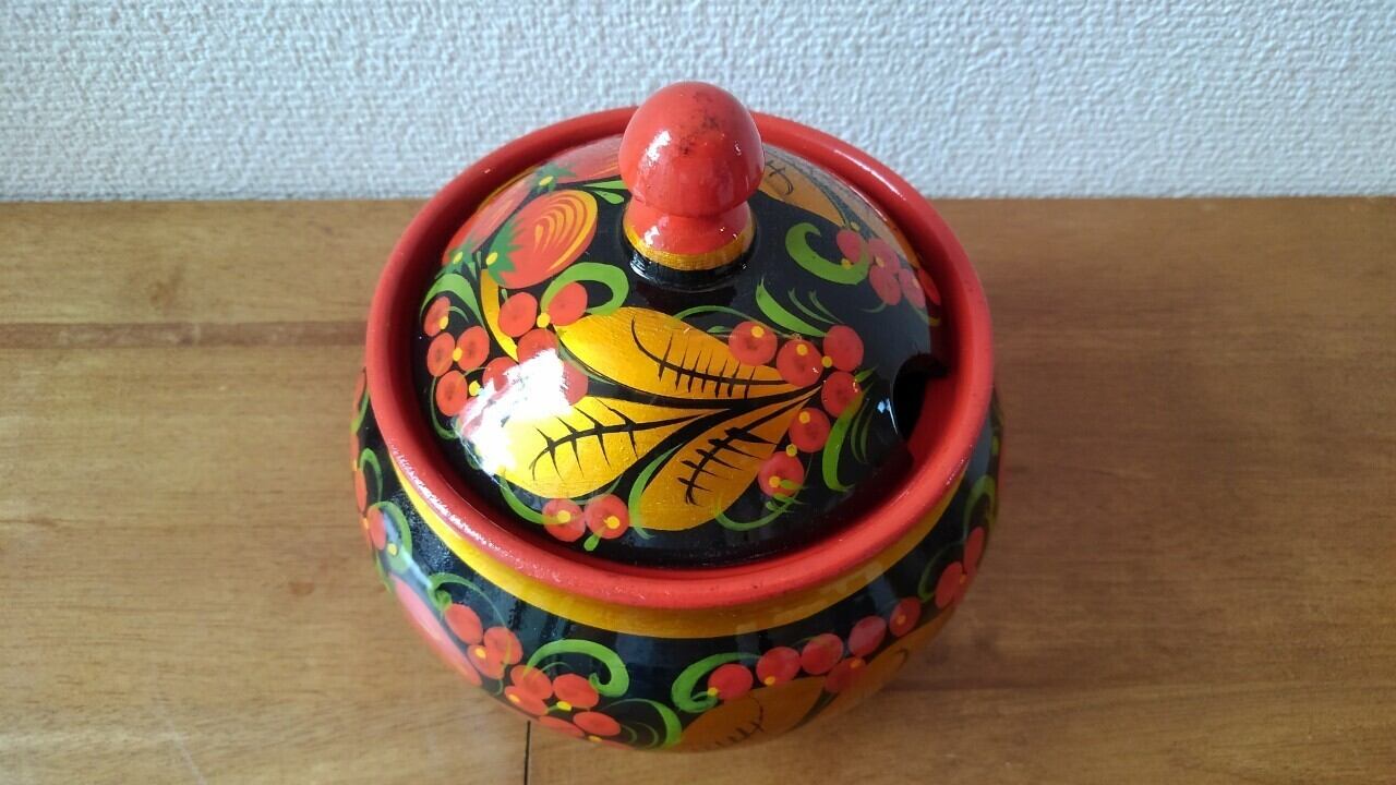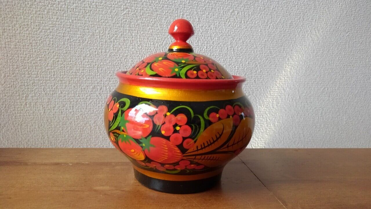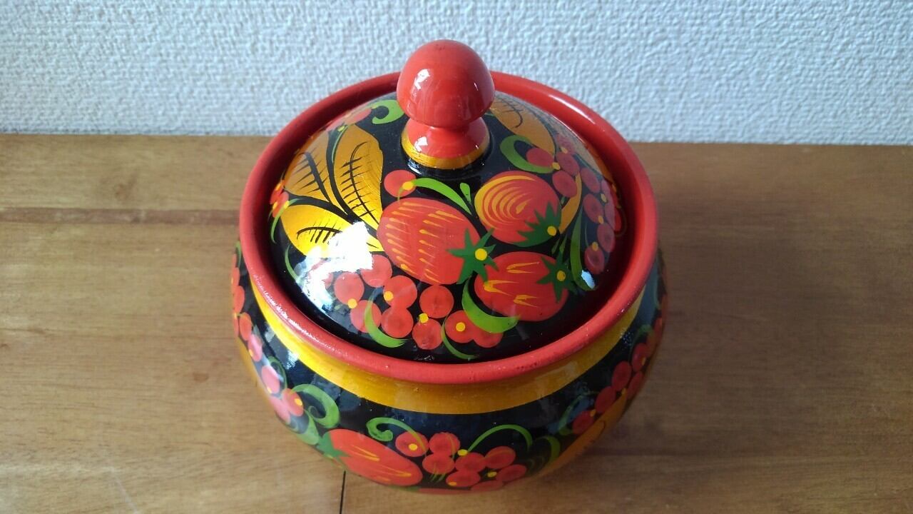 【X002】北欧ロシア雑貨 ホフロマ塗りの置物 煎餅・お菓子入れ