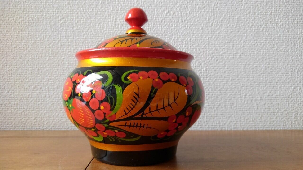 ロシアの主要な伝統工芸品であるホフロマ塗です。ホフロマ村という地域が発祥の民芸品です。
