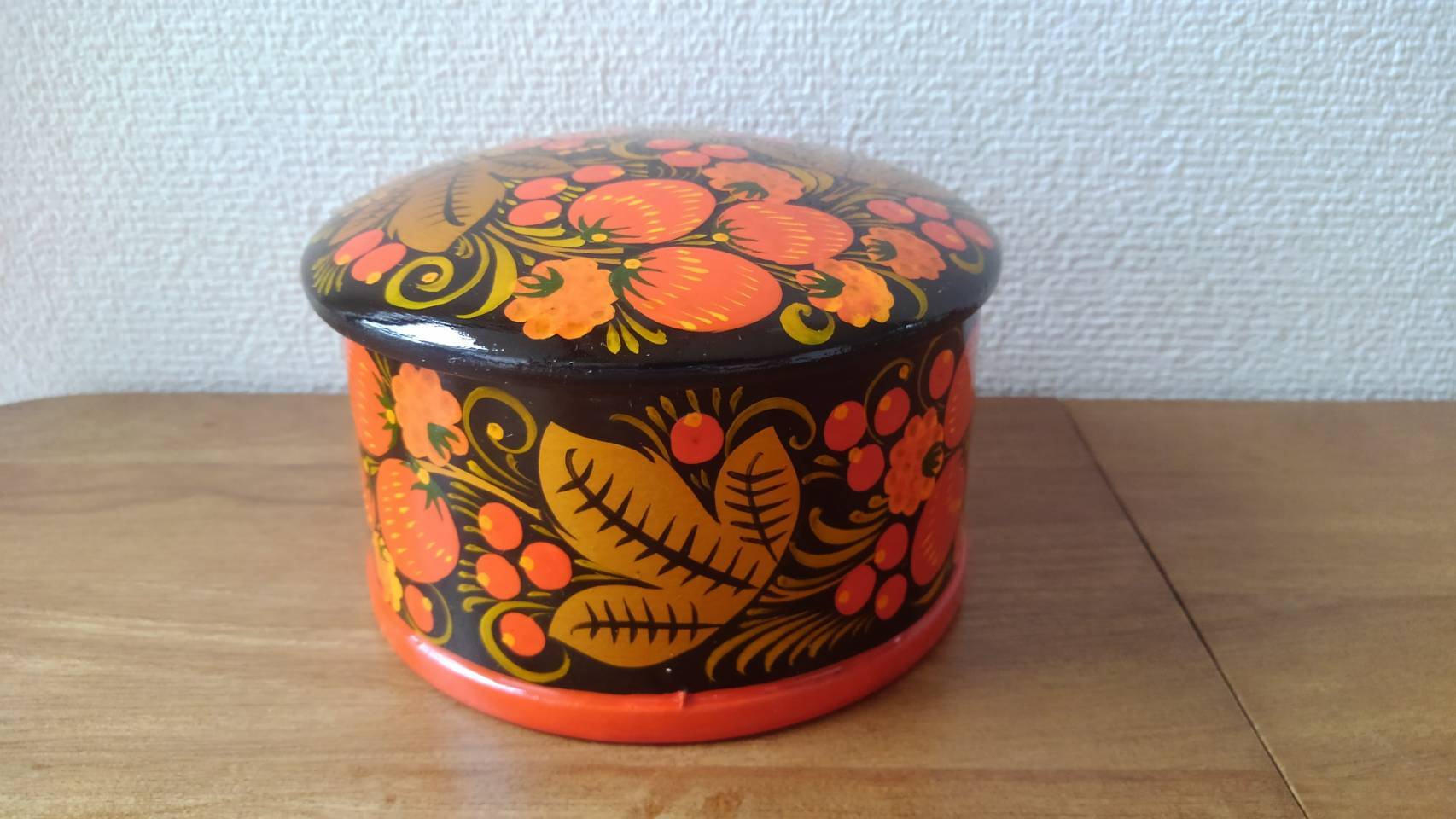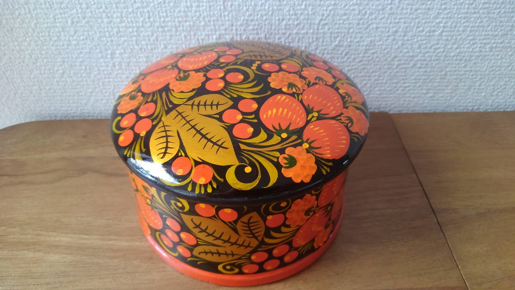 【X005】北欧ロシア雑貨 ホフロマ塗りの置物 煎餅・お菓子入れ