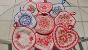 アルハンゲリスクの伝統工芸品である刺繍は赤色がアクセントとなっていて、とても可愛らしい印象です。麻の生地でできていて、中には綿が入っています。ベテランの職人さんが1つ1つ丁寧に作られています。
