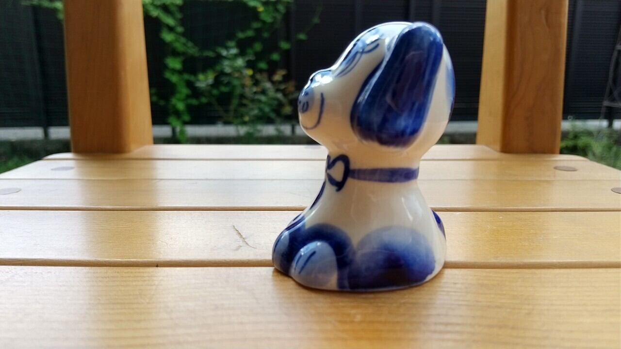 ロシアの伝統陶器、グジェリ焼きです。犬をモチーフにしています。