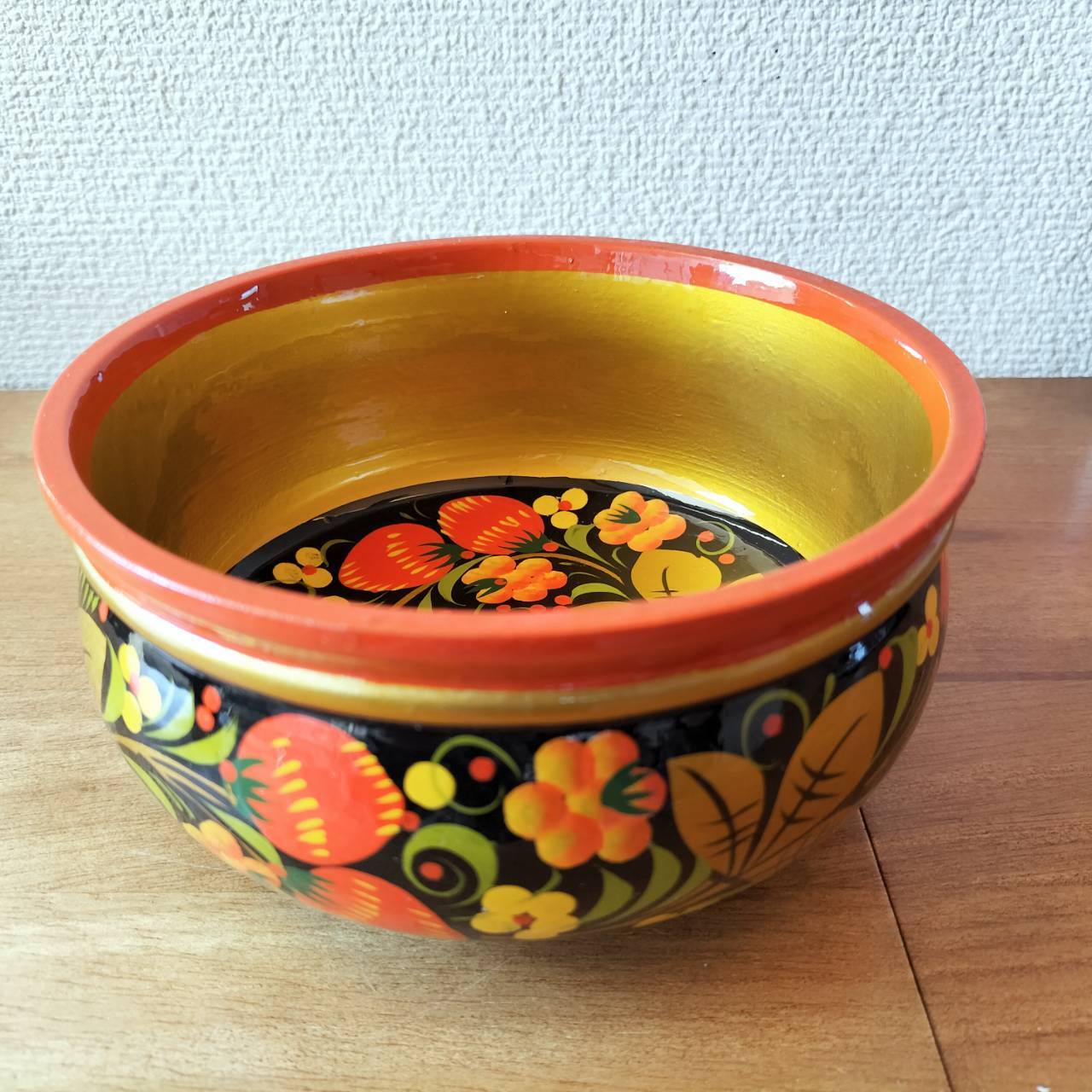 ロシアの主要な伝統工芸品であるホフロマ塗の小鉢、入れ物です。ホフロマ村という地域が発祥の民芸品です。