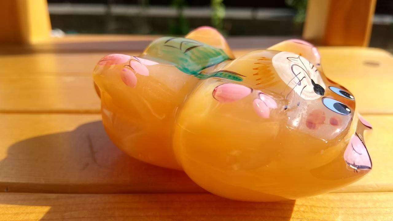 ぐうたらしている怠け猫をモチーフにした天然石(セレナイト)の置物です。