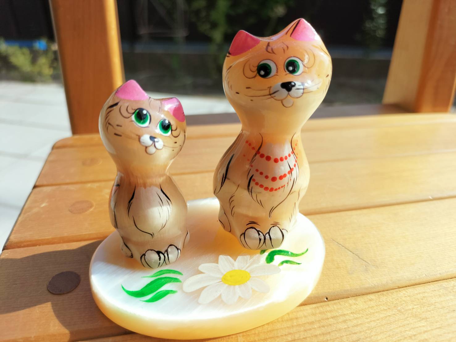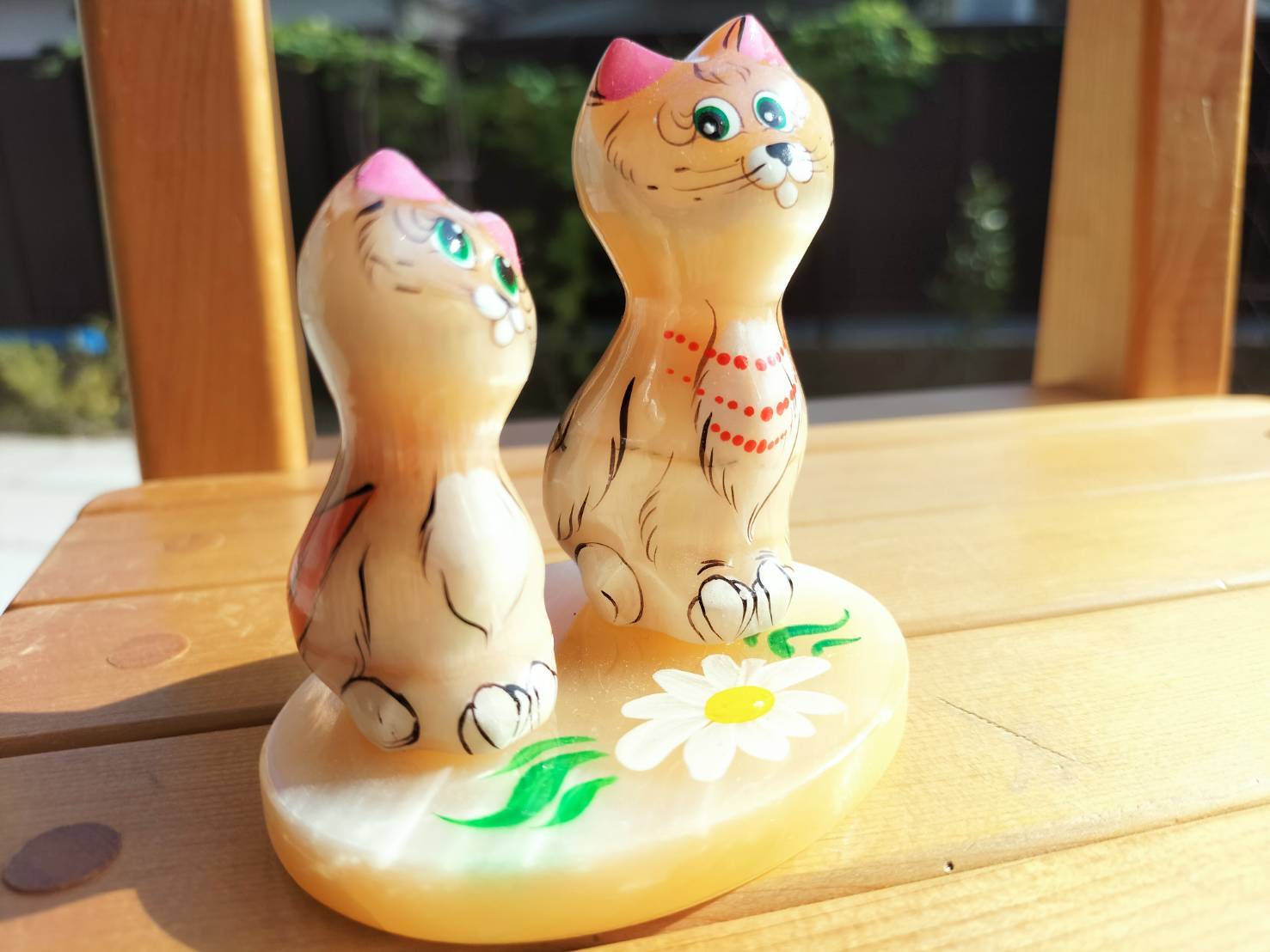 【CEL044】北欧ロシア雑貨の天然石(セレナイト) ネコの親子