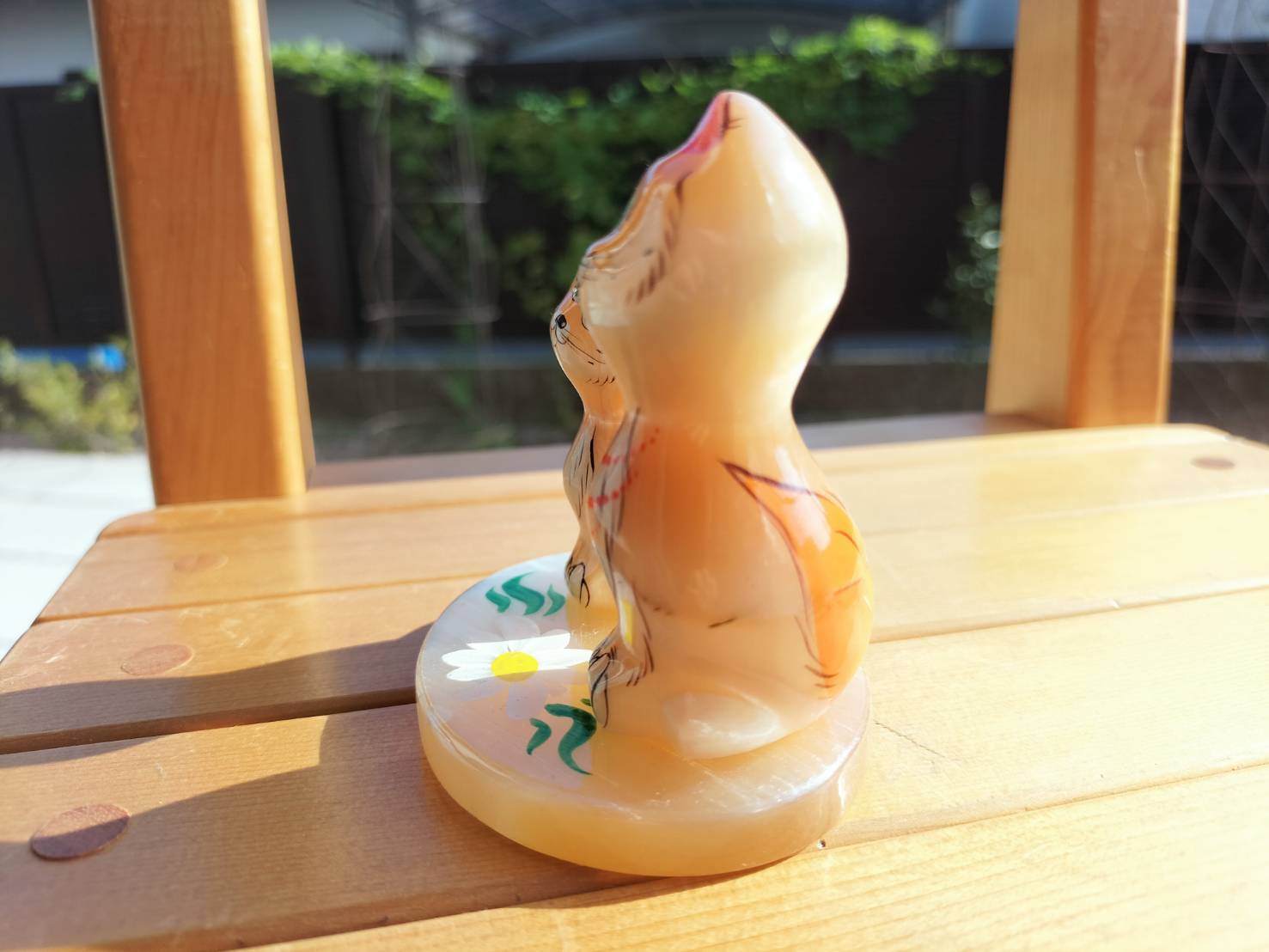 猫をモチーフにした天然石(セレナイト)の置物です。