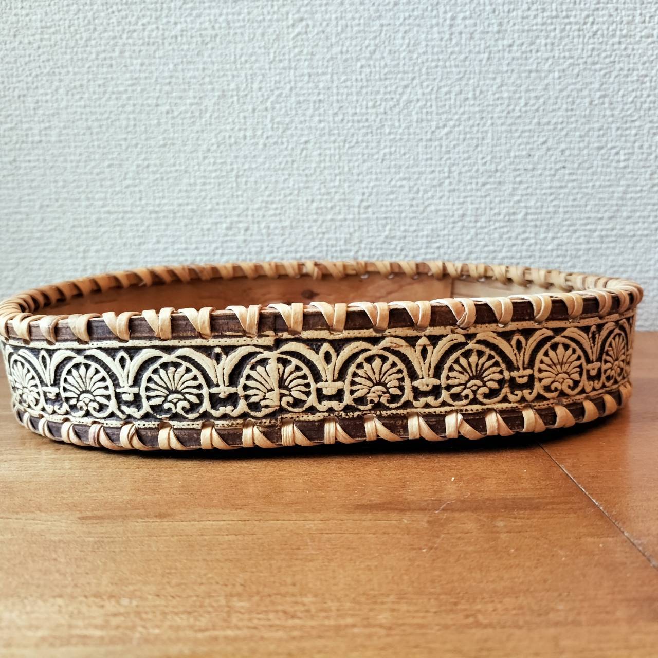 こちらのベレスタは耐久性を維持するため、蓋と底の接続部分が樹皮のヒモで編まれています。