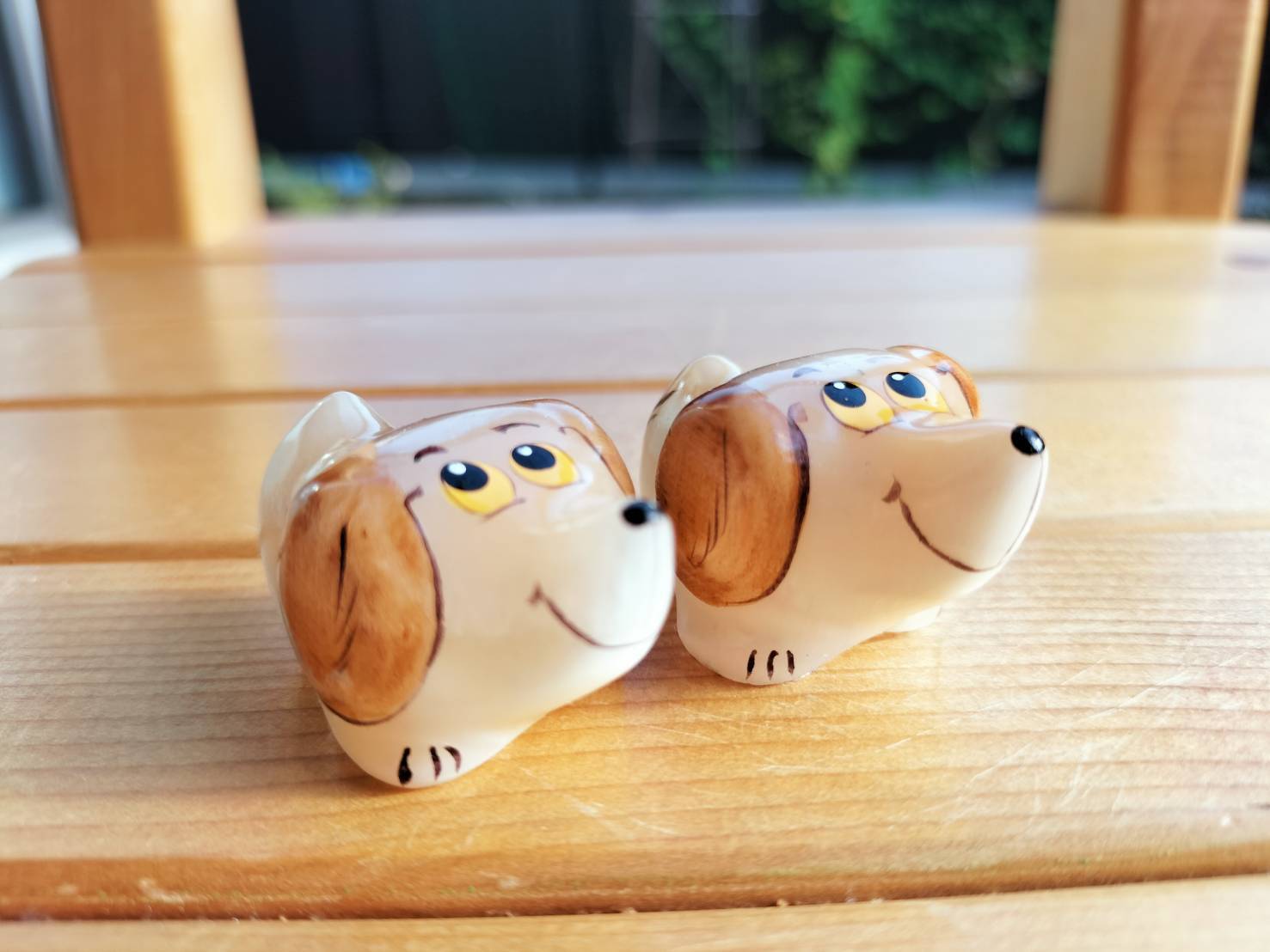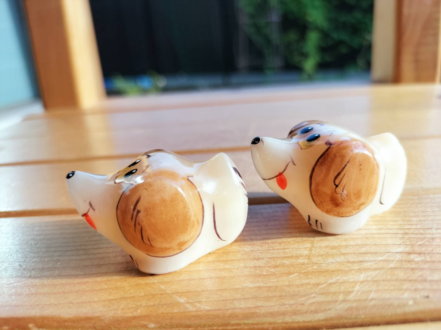 犬をモチーフにした天然石(セレナイト)の置物です。2体セットバラ売り不可です。